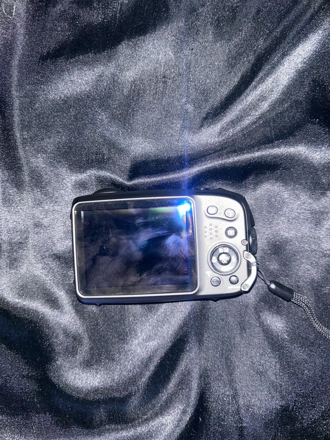 This is a Fujifilm XP digital camera with Wi-Fi connectivity. It's waterproof up to 20m (65ft) and shockproof from 1.75m (5.8ft). It also features wide optical zoom. It comes with a carrying case.
