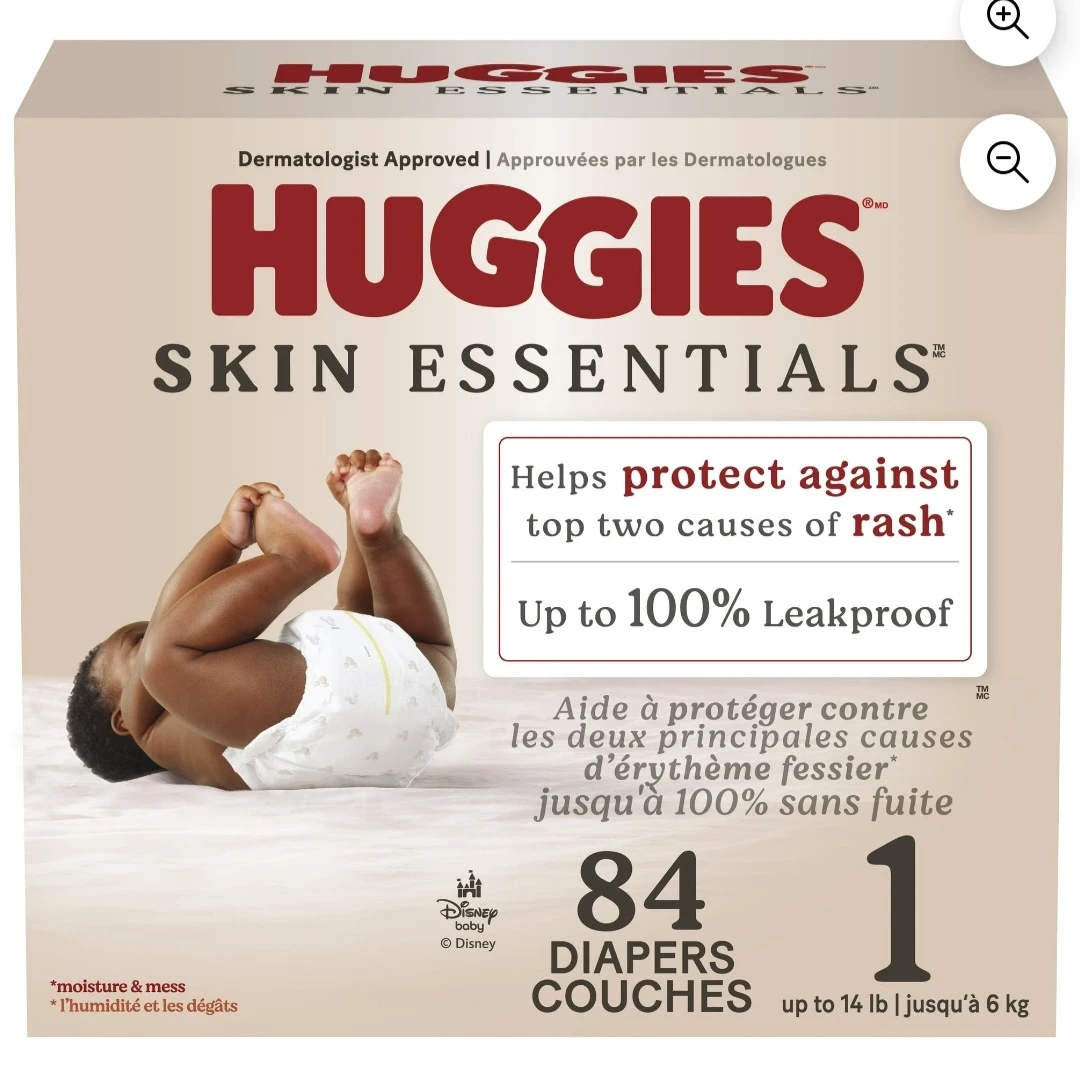 Pic 2) huggies skin essentials, size 1, 84 diapers, $25