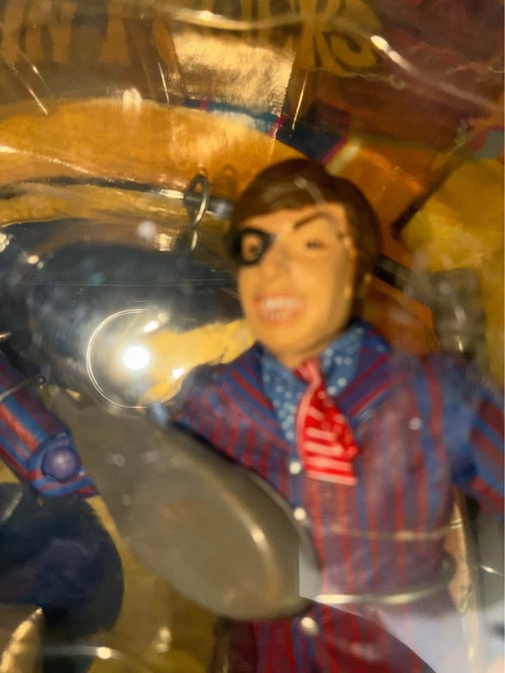 This is a Mezco Toys Austin Powers Carnaby Street Austin action figure. The figure is based on the movie Austin Powers in Goldmember. It stands about 6 inches tall. Accessories include a lamp post, umbrella, and a handgun. The item was manufactured in 2002. Card is damaged and Austin’s glasses are broken. Please look at photos. Item sells for over $35 on line MOC so this is less then half price but still on card.