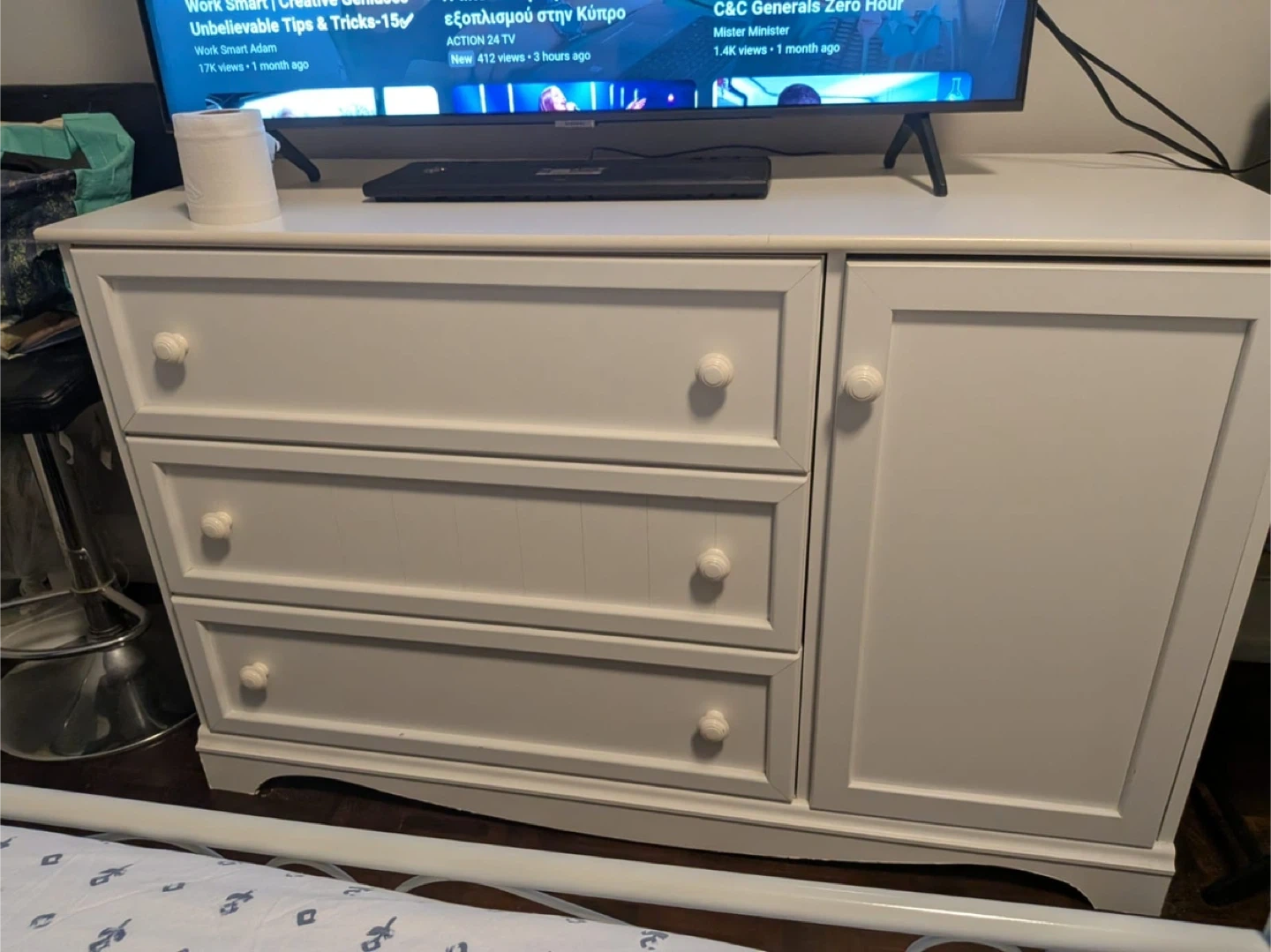 White Dresser with 3 Drawers and Cabinet