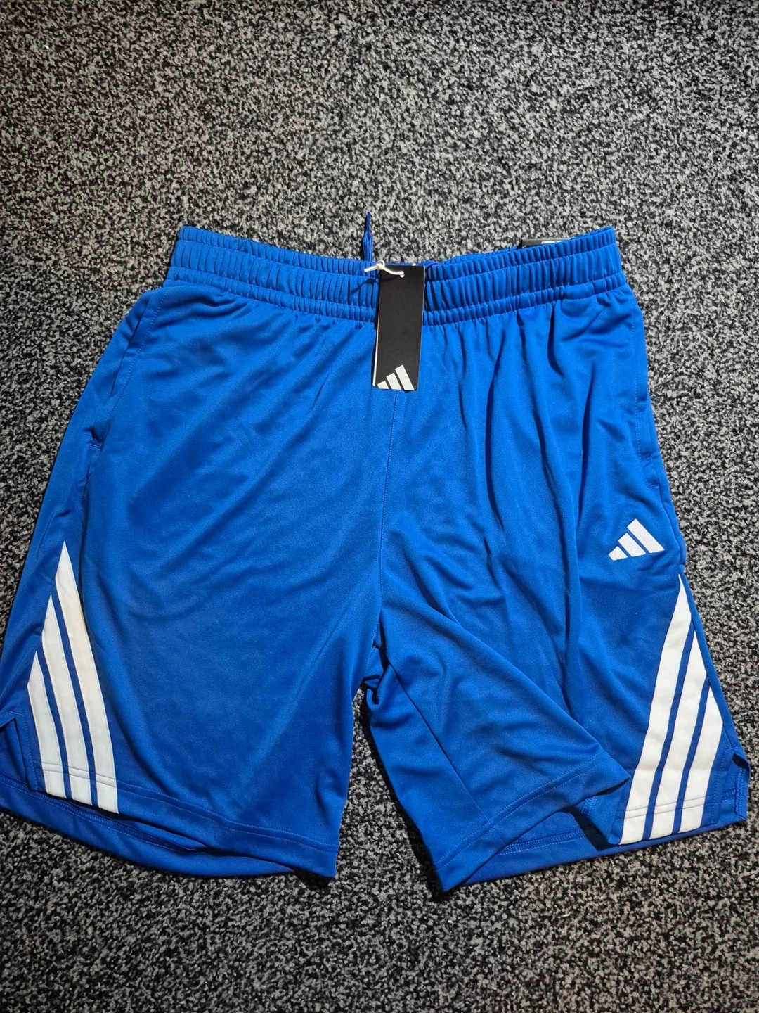 Selling a pair of Adidas blue shorts in size L. These shorts feature the classic Adidas three-stripe design and are perfect for sports or casual wear. They're in great condition and ready for a new owner! It is brand new never worn! Comes with its tag and everything!