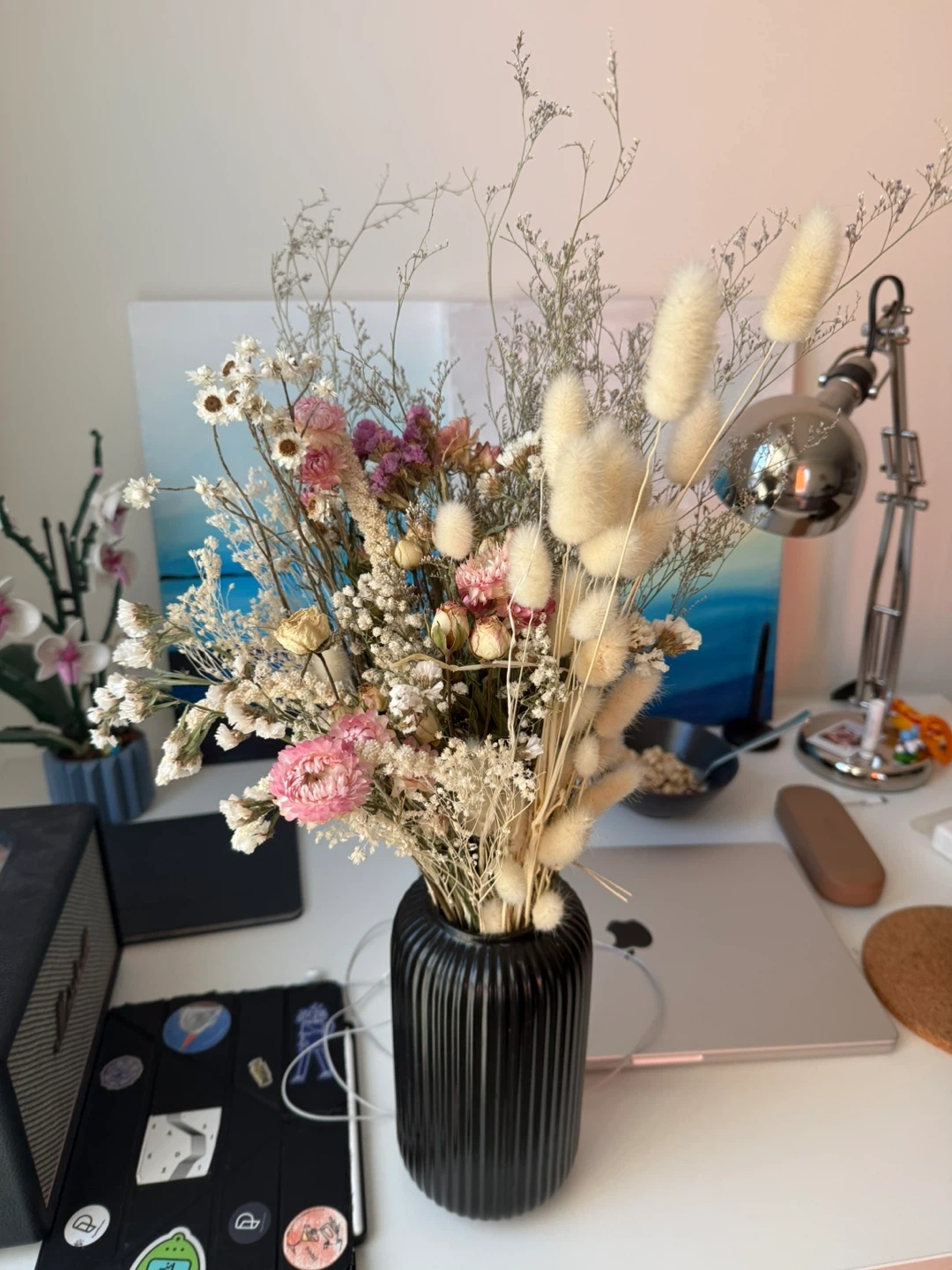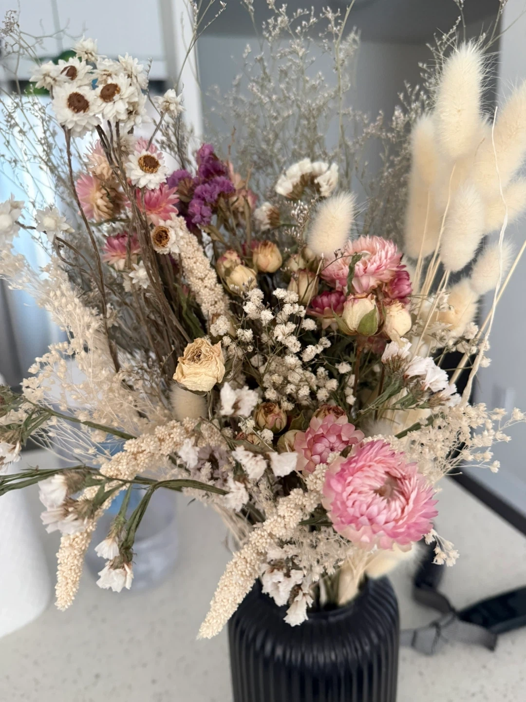Dried Flower bouquet in Black Vase