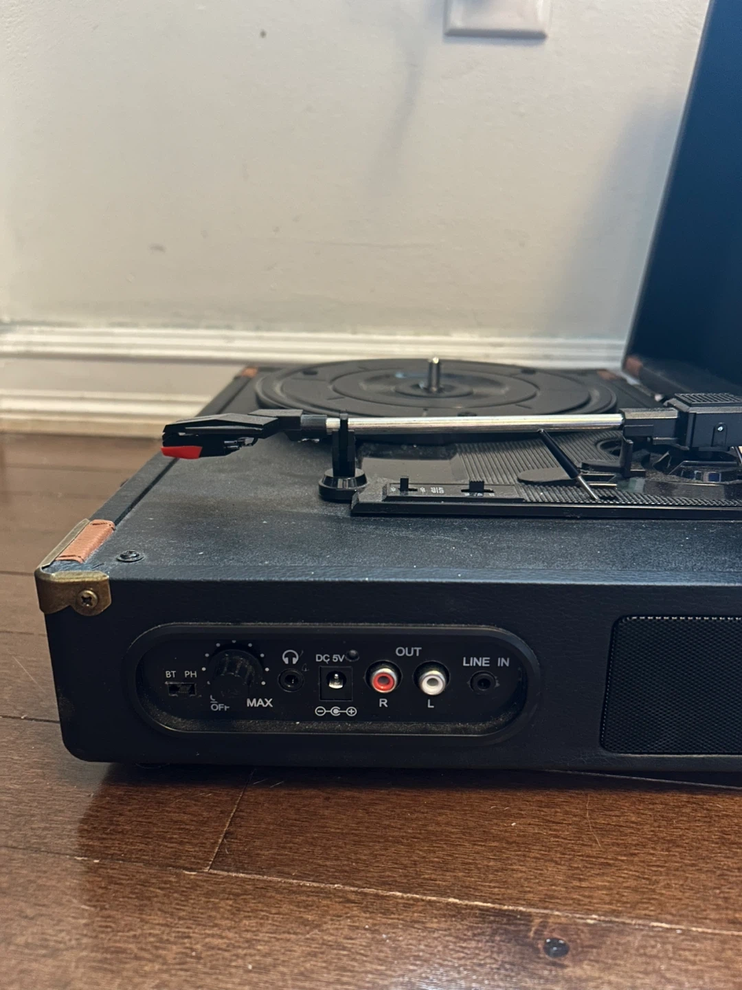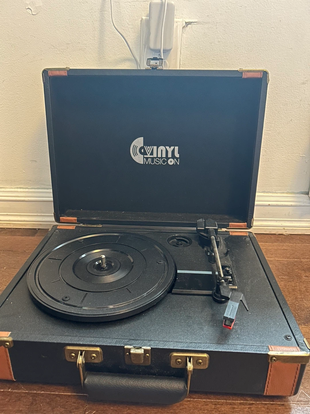 Selling a portable Vinyl Music record player! It's in great shape and ready to play. Can play vinyls or be used as a Bluetooth speaker. Comes with the power cord.