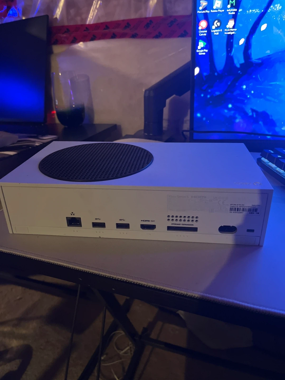 This is an Xbox Series S gaming console. It's a compact and powerful machine for your gaming needs. Comes with storage expansion slot.