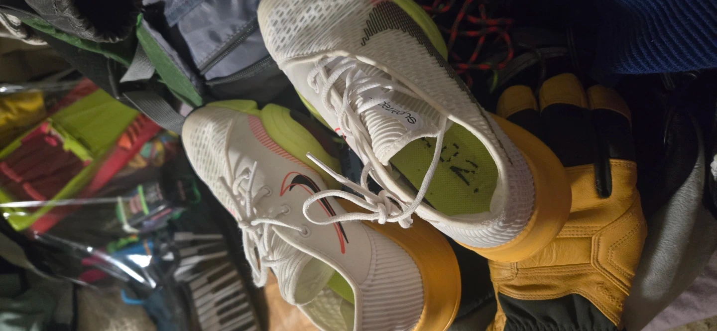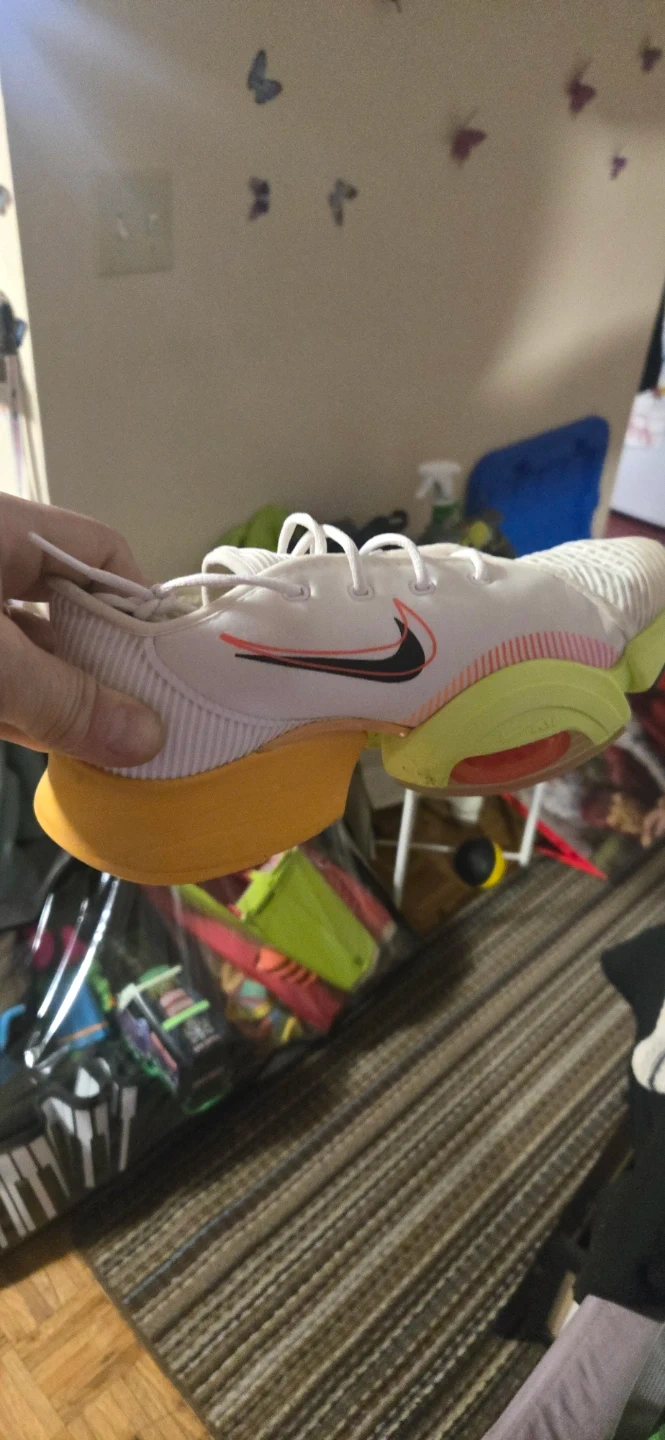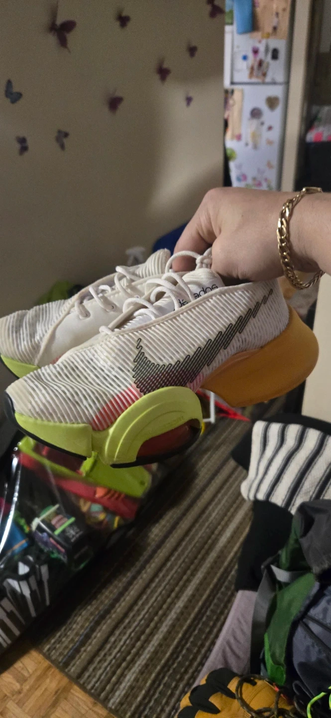 These Nike SuperRep Cycle 2 shoes are designed for spin classes. They have a white and volt colourway. US size 6, EUR size 36.5, UK size 3.5.