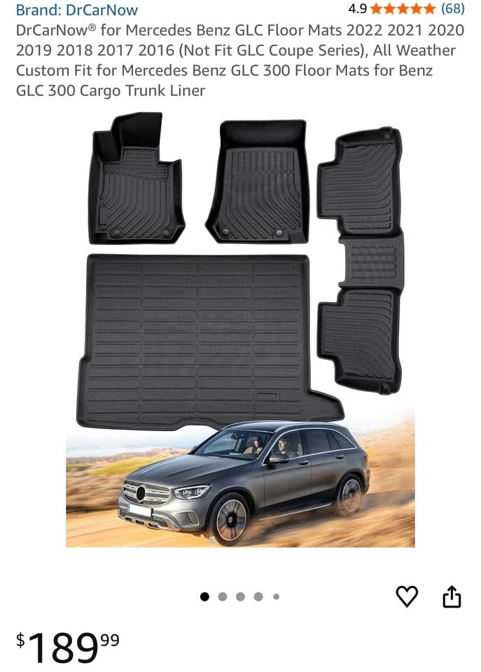 Brand new DrCarNow all-weather floor mats and cargo trunk liner set for Mercedes-Benz GLC (2016–2022, not for GLC Coupe). Custom fit design protects your vehicle from dirt, water, snow, and spills.