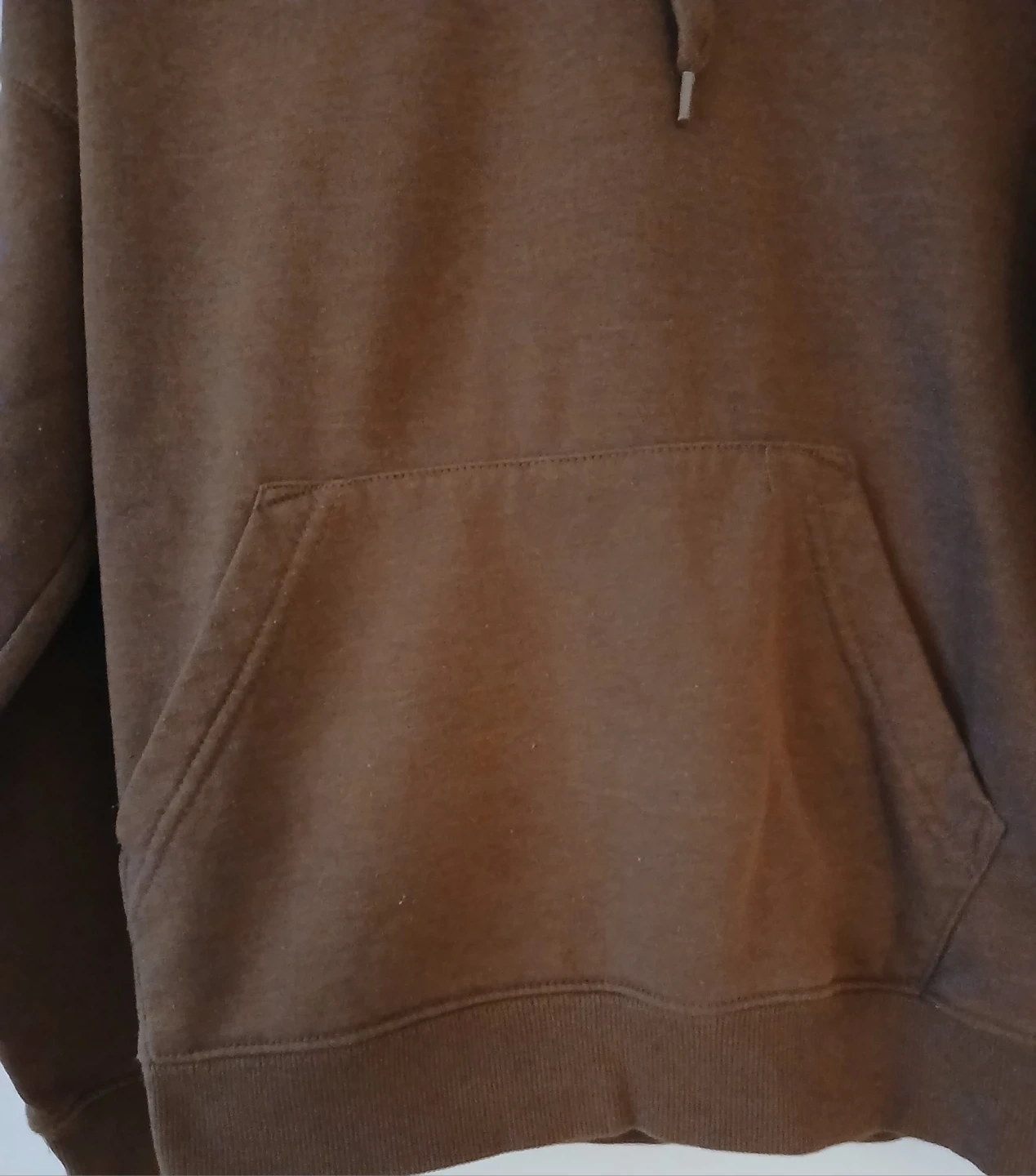 This is an FB Sister hoodie in a size XXS. It's a nice brown colour with a front pocket and drawstrings for the hood. It's made from a soft material, perfect for everyday wear.