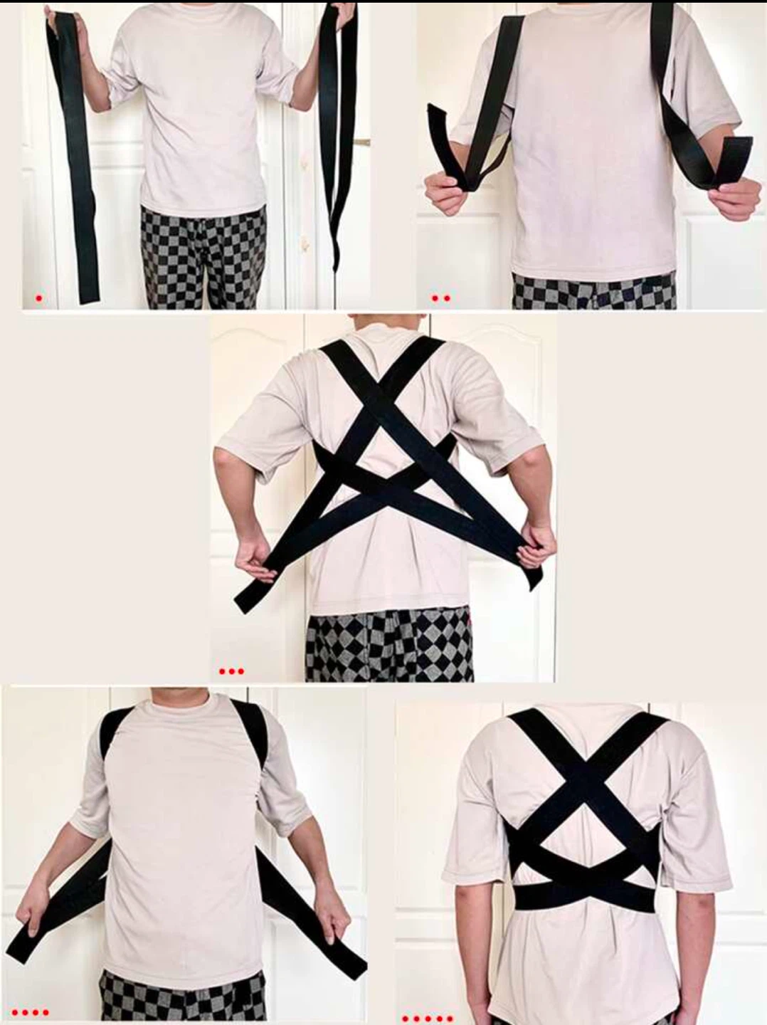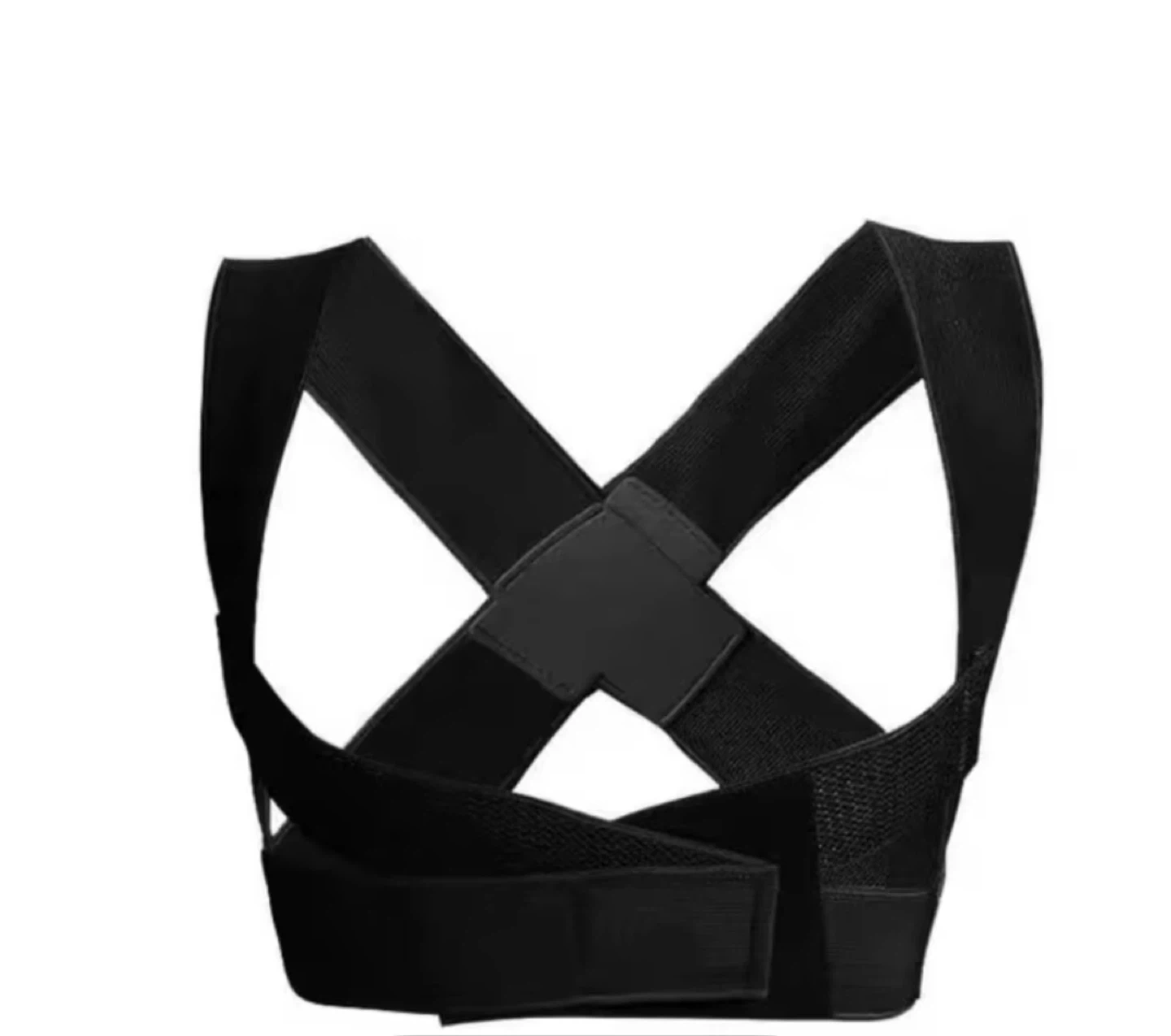 This black posture corrector belt is designed to help improve your posture. It's made of adjustable straps for a comfortable fit. This belt can be worn daily to support better back alignment.