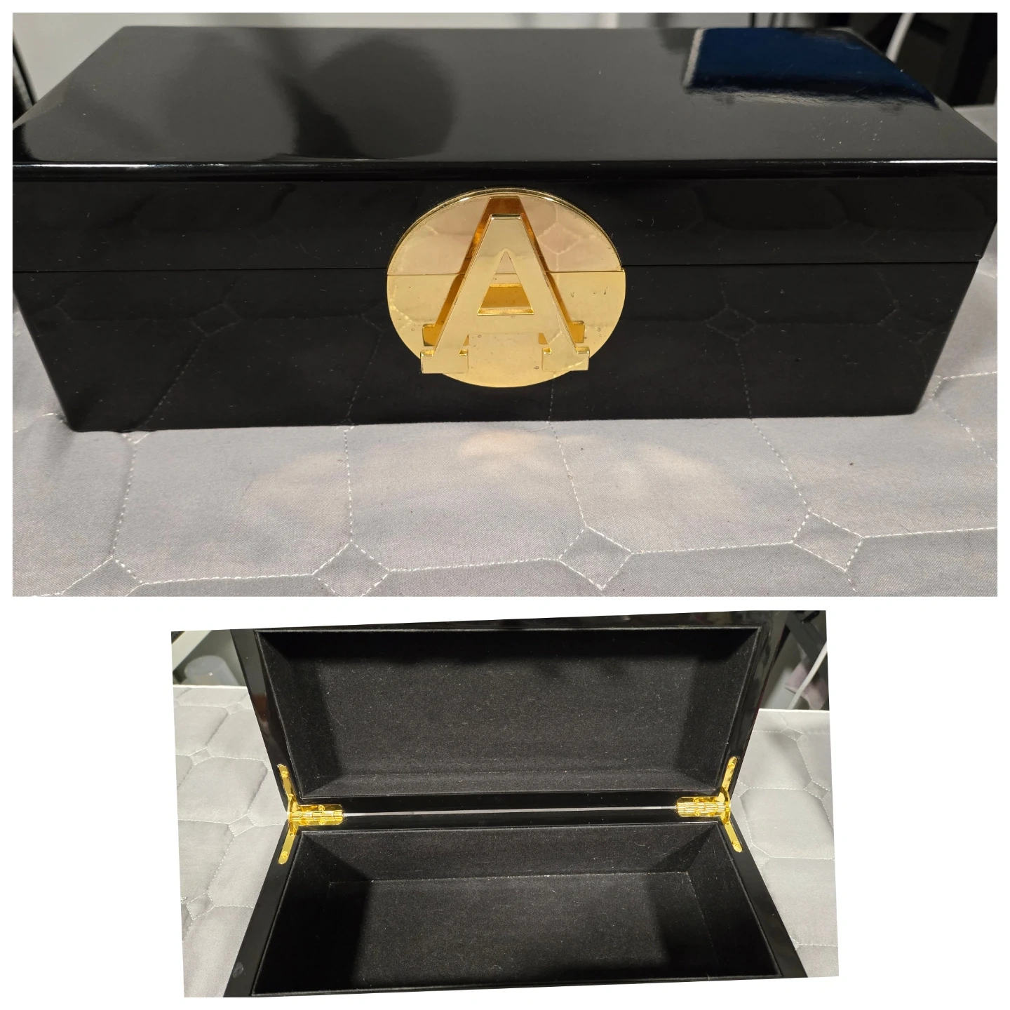 🏆Black Lacquer Jewelry Box with Gold 'A' Emblem