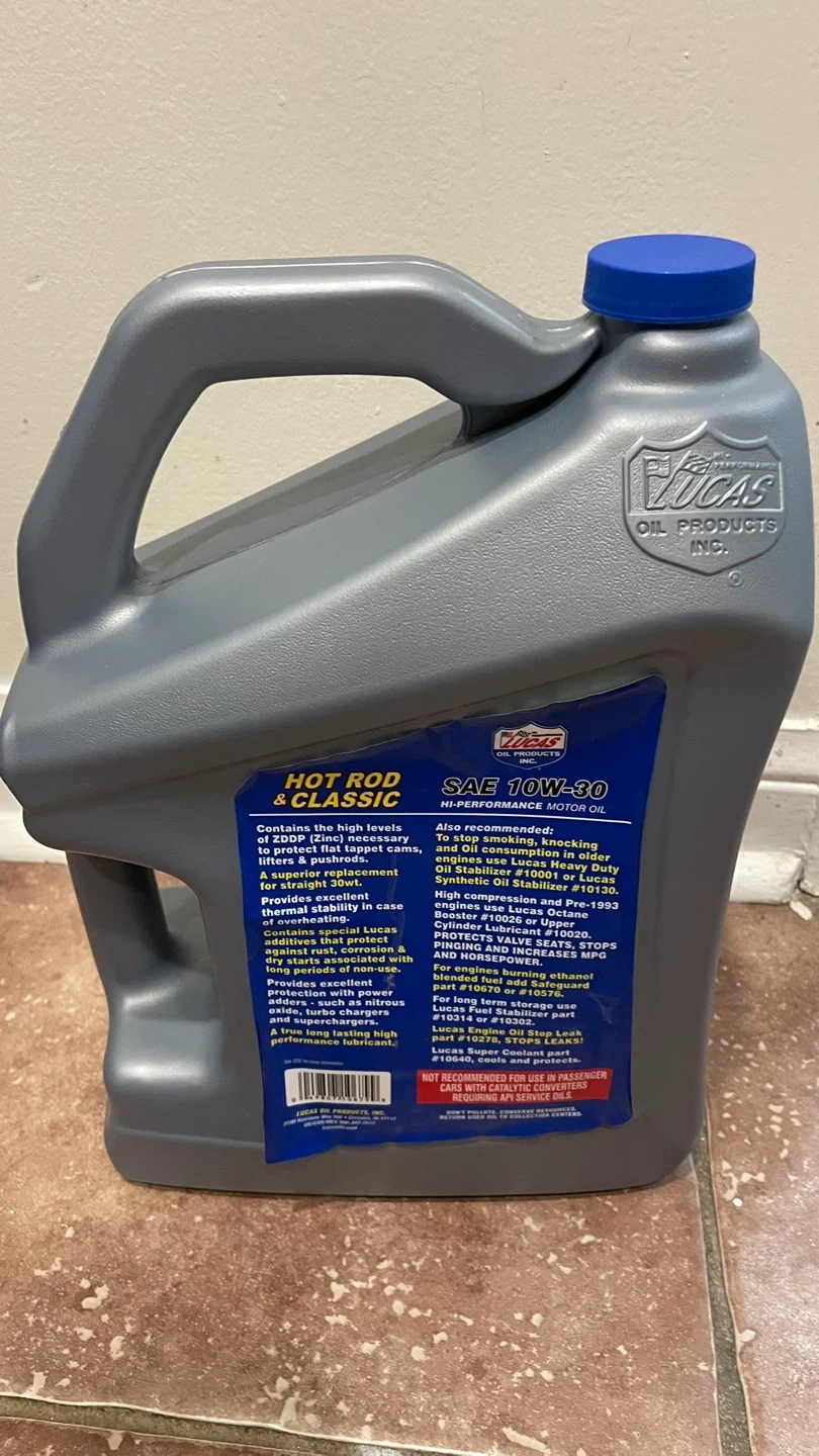 Lucas Oil SAE 10W-30 Hot Rod & Classic Motor Oil. Contains high levels of zinc and other protective additives. Provides excellent film strength and heat resistance. This oil is formulated for muscle cars and high-performance engines.