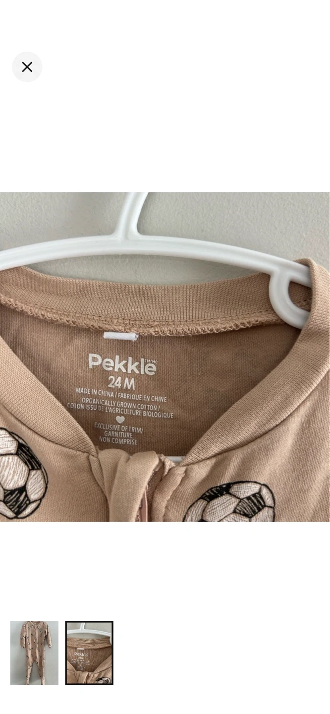 Buy & SellPekkle 24M Footed PajamasPekkle 24M Footed Pajamas$5Pekkle brand. Zip up sleeper. Brown with soccer print. Size 24m. Brand new condition $5ConditionLike newAge1-2 yearsWHERE TO MEET5 counties northern PeterboroughView MapSELLERMaggie RobinsonEdmison Heights638 reviews0 chats·0 favorites·1 viewsSEND CHAT TO SELLERHi Maggie Robinson! I’m interested in your listing.Hi Maggie Robinson! I’m interested in your listing.Get the Karrot app to chatSign In to chat