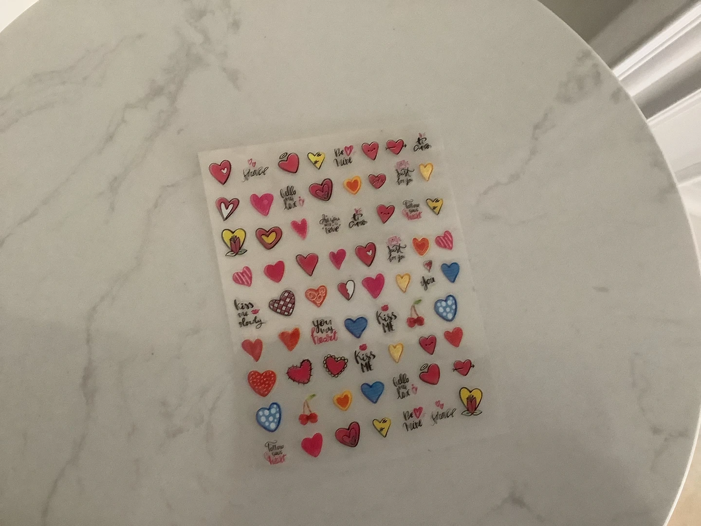 A large collection of assorted nail art stickers perfect for decorating your nails. Includes various designs like hearts, flowers, and other cute motifs. These are easy to apply for a fun nail enhancement! 10 sheets non opened.