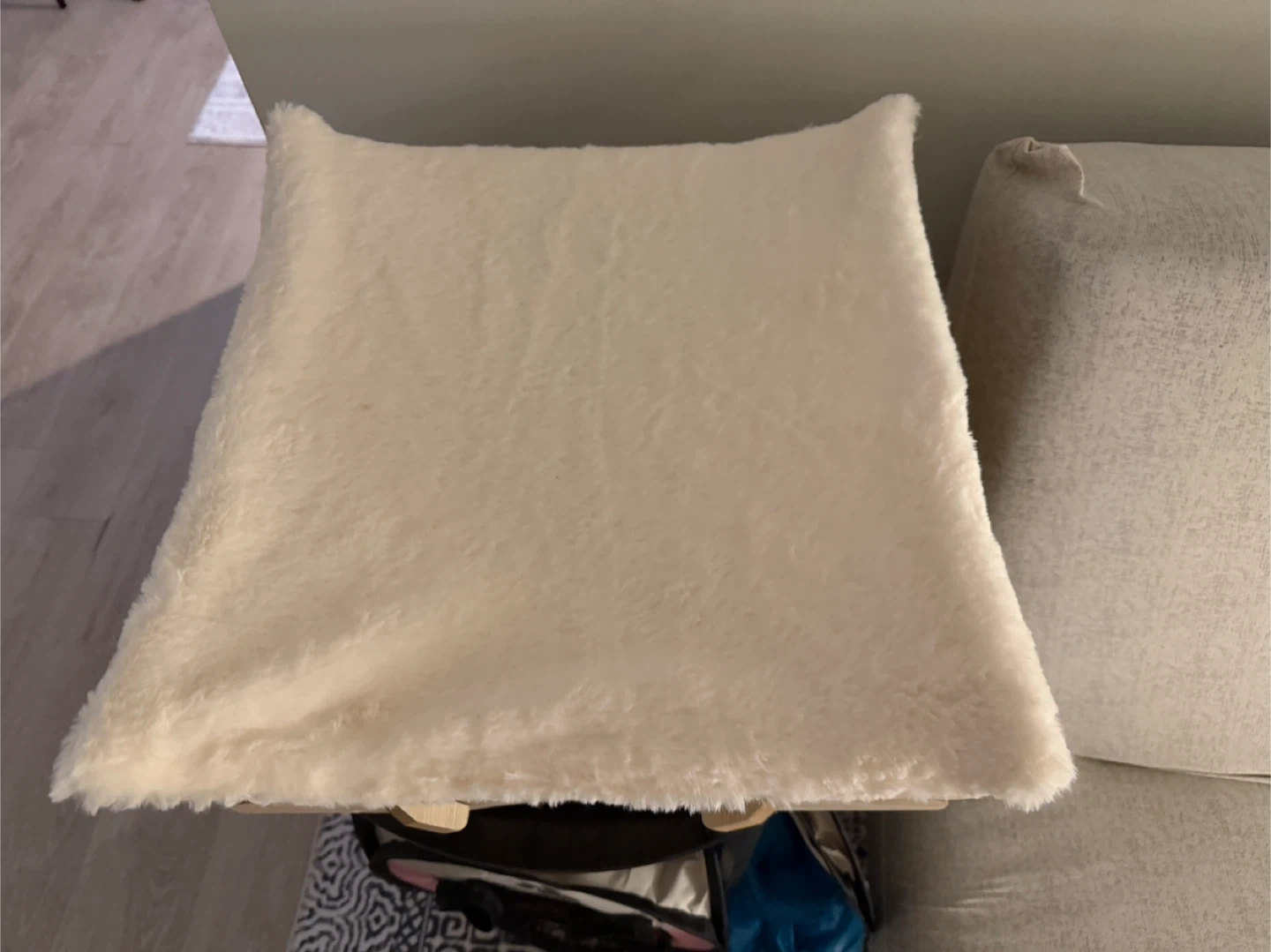 Cream Faux Fur Cat Hammock Bed