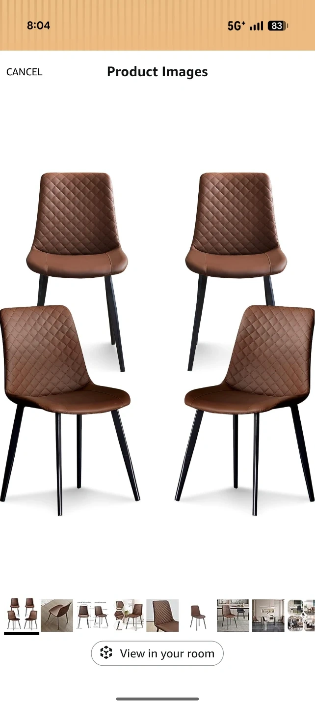 Seonyou Brown Dining Chairs Set of 4 for Kitchen Dining Room, Upholstered Leather Mid Century Modern Heavy-Duty Metal Kitchen Chairs for Restaurant, Living Room