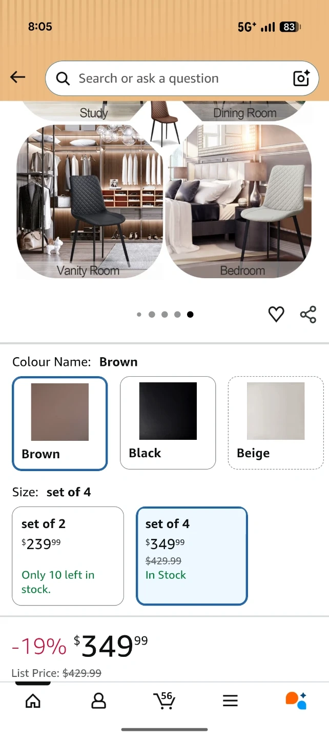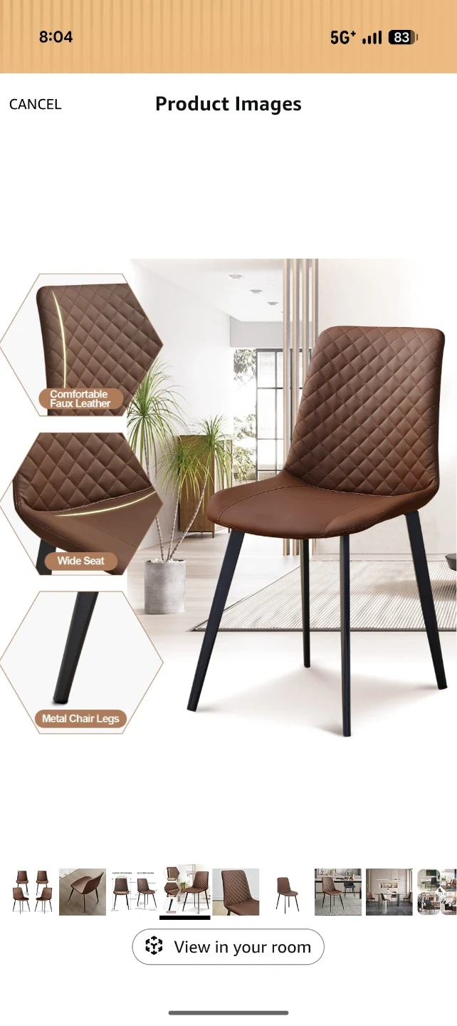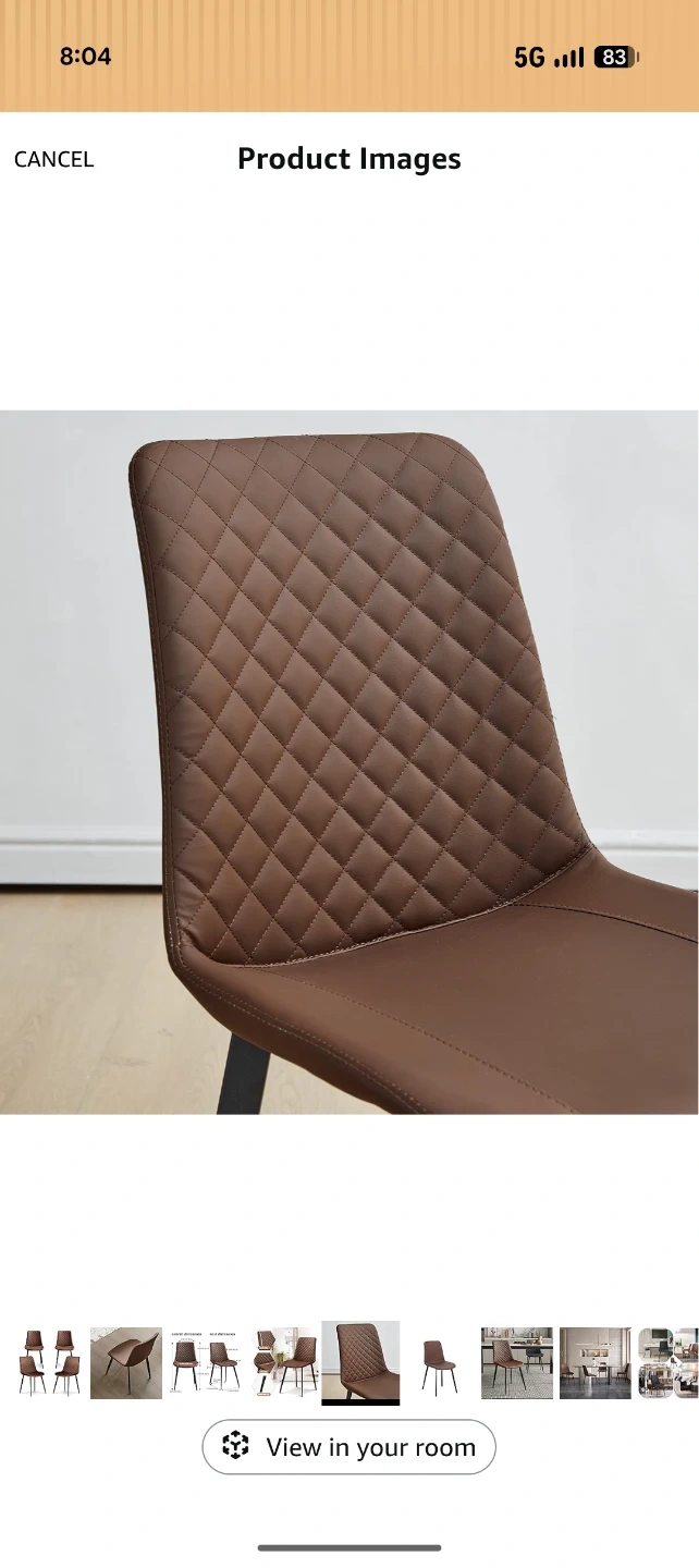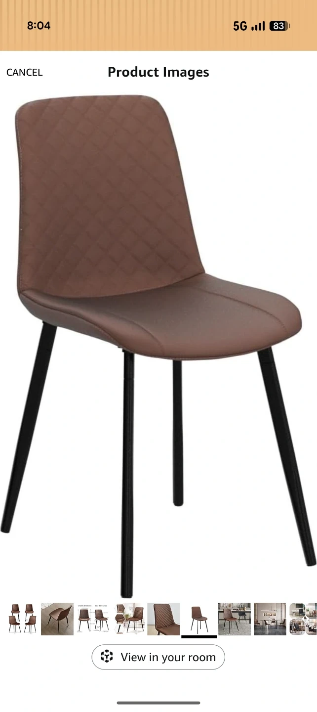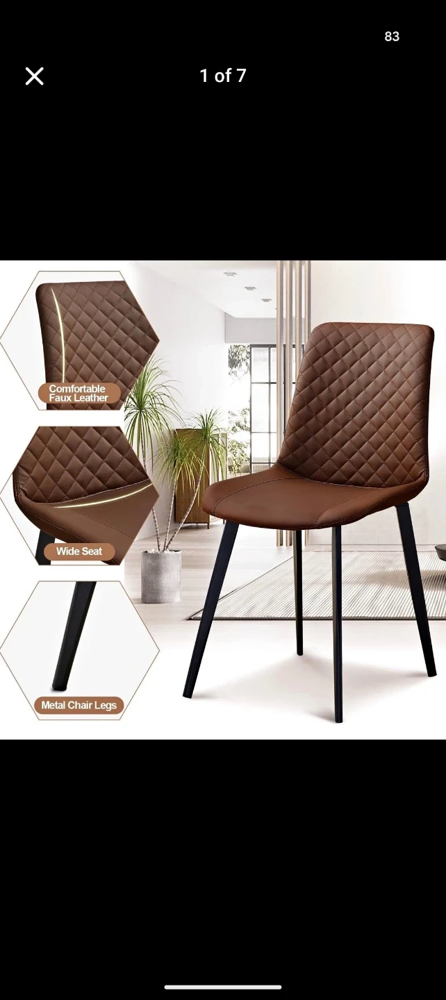 Comfortable dining chair with a wide seat. Upholstered in brown with diamond stitching. Features sturdy metal legs for support.
