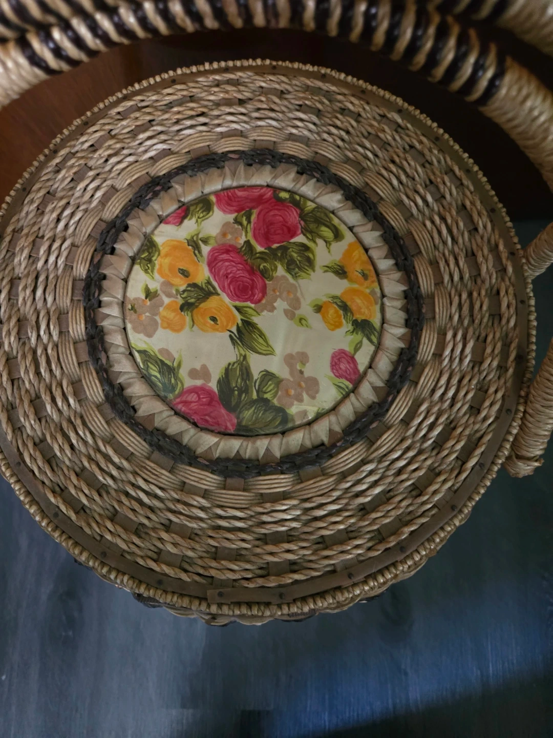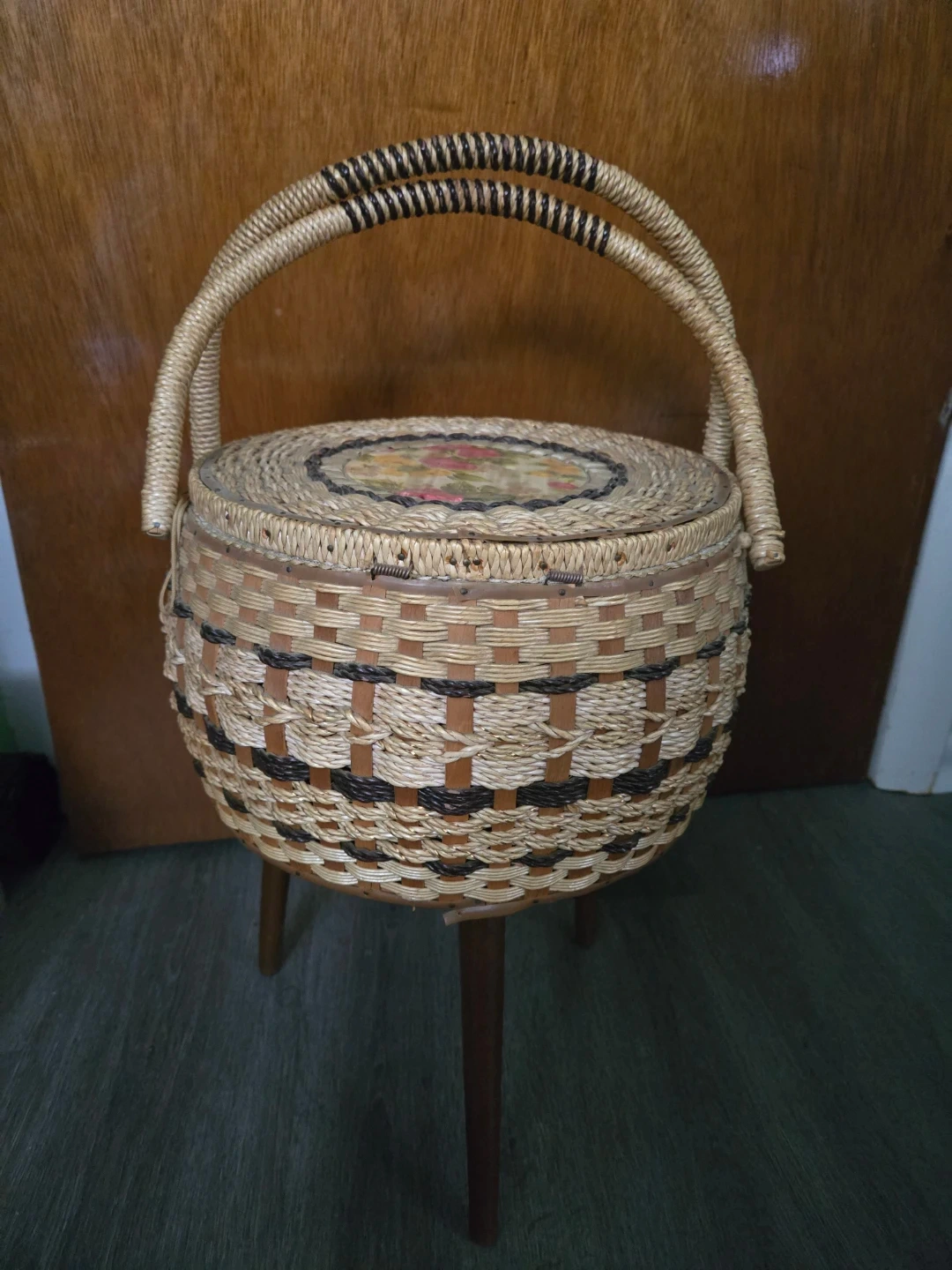 Vintage Woven Bamboo Sewing Basket