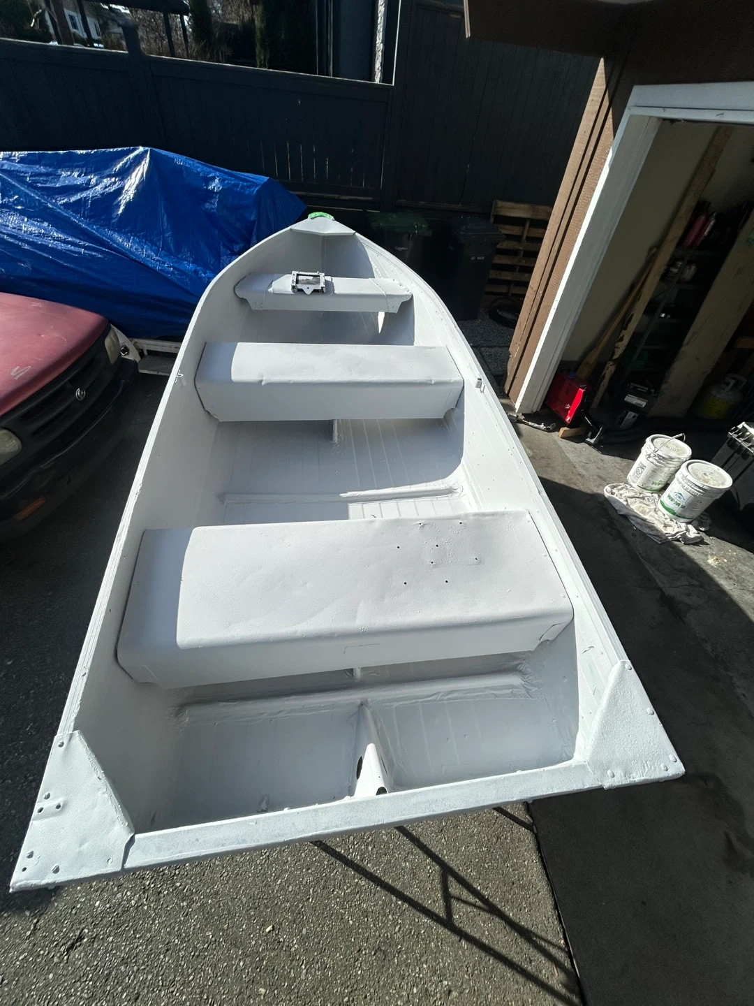This is a freshly painted aluminum fishing boat. It's a great size for one to three people out on the lake. It's ready for your next fishing trip! It’s a 12ft asking 1k$ obo or I have a 9.8hp Johnson that was working last year but can’t get to run probably needs card clean can toss in for 200$ extra