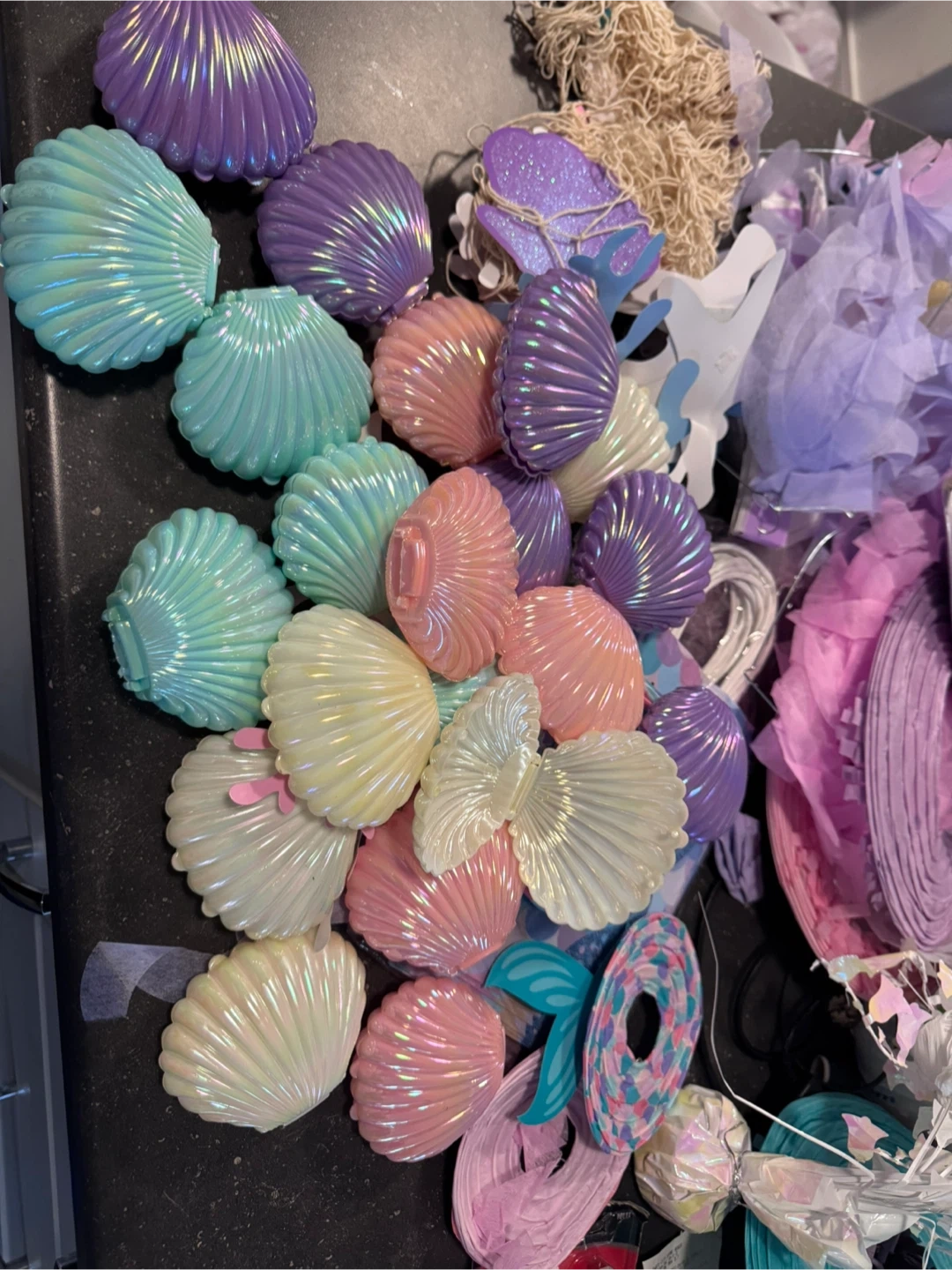 This kit has wall decorating elements for a mermaid theme. It includes various cutouts, paper fans, and shells decoration . Great for a birthday party!