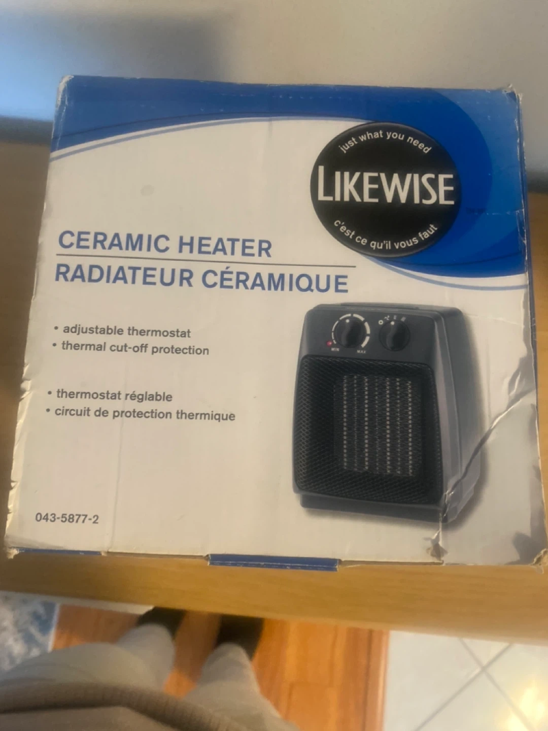 Likewise ceramic heater with an adjustable thermostat and thermal cut-off protection. It's 900/1500 W. Great for keeping a small space warm!