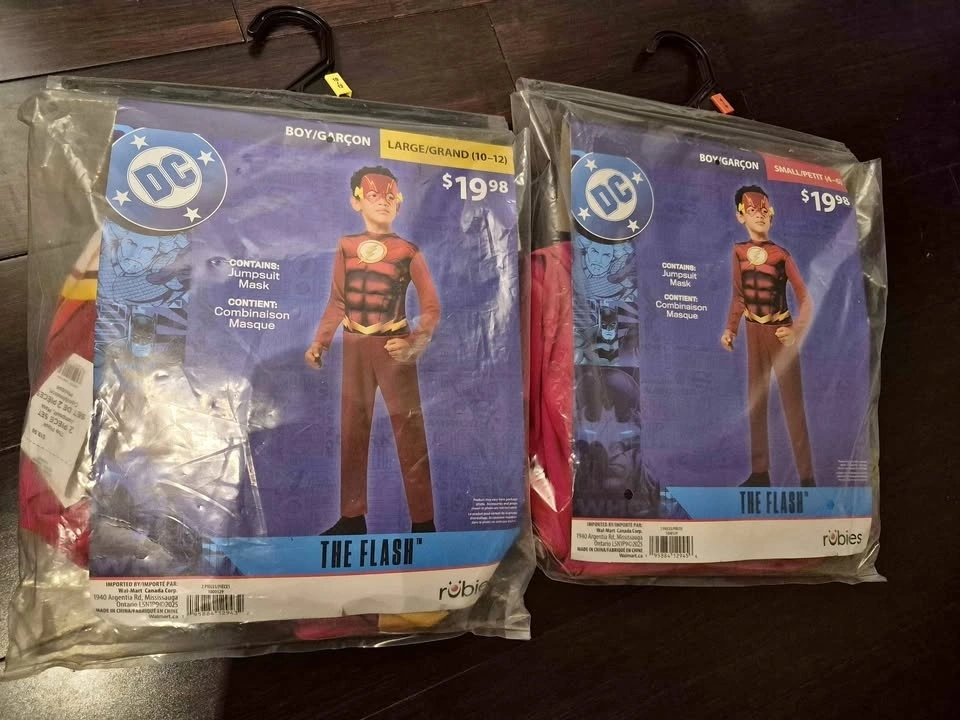 Brand New DC Flash costumes available in size 10-12 only. Derry & McLaughlin.