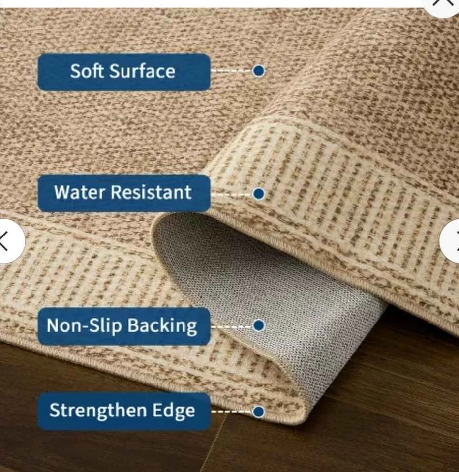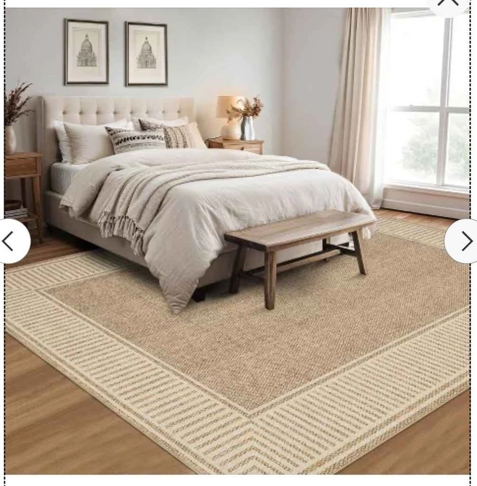 Brand new modern washable geometric bordered area rug. Soft, non-slip carpet suitable for dining rooms, bedrooms, and living rooms. From a pet-free and smoke-free home. Feel free to message if you have any questions!