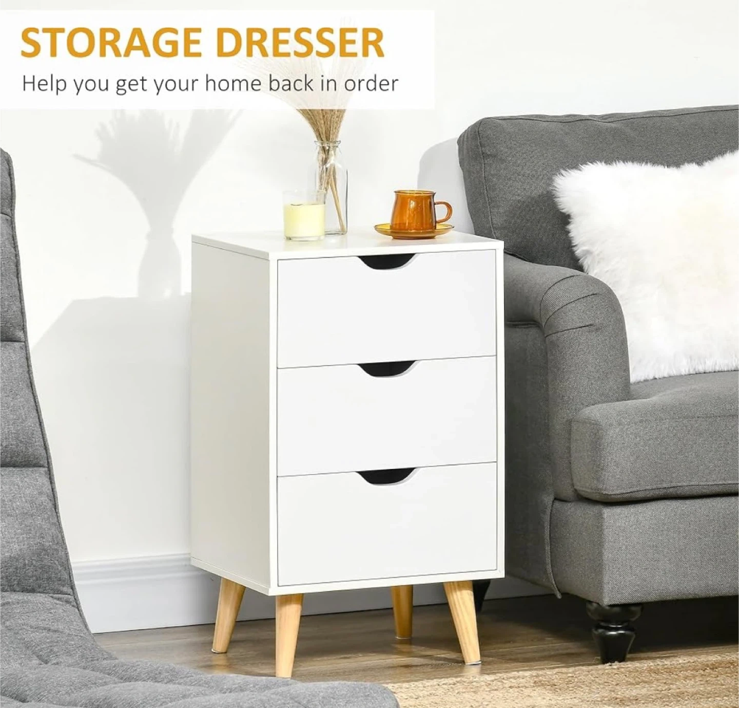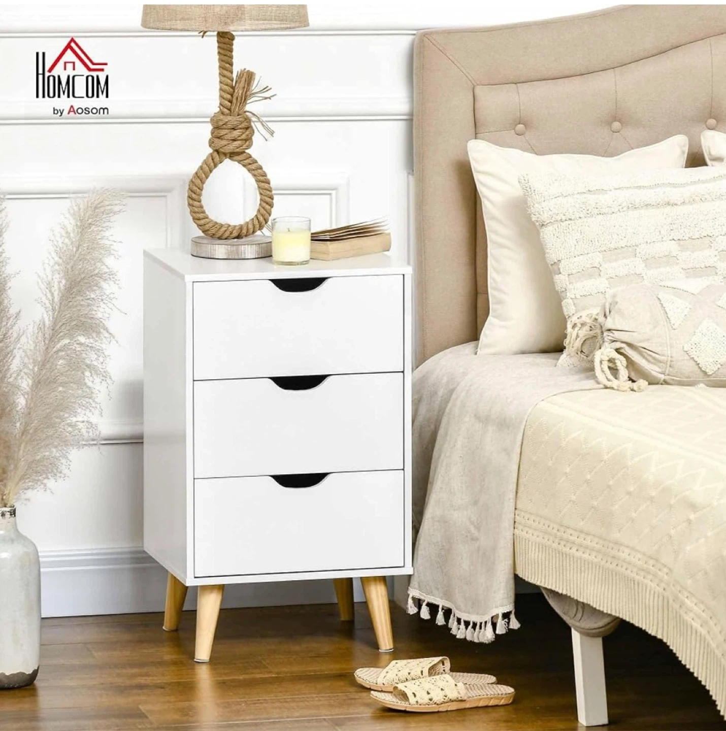 This Brand New in Box HOMCOM nightstand features three drawers and a sleek white finish, perfect for adding storage and style to any bedroom. With its modern design and practical functionality, it’s an excellent addition to your home decor.