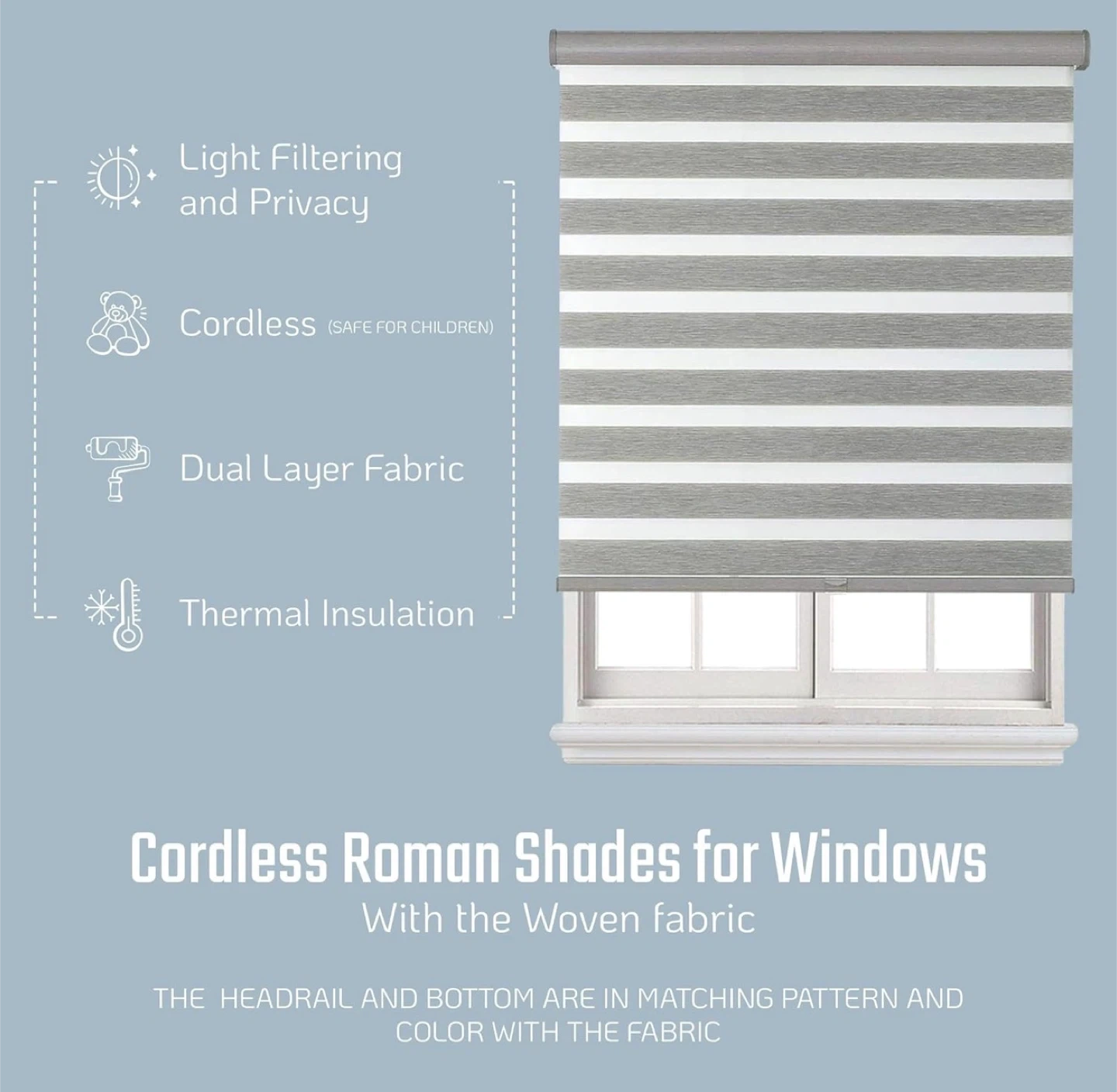 NEW Cordless Zebra Blinds, 30” W x 72” H, Steel Grey