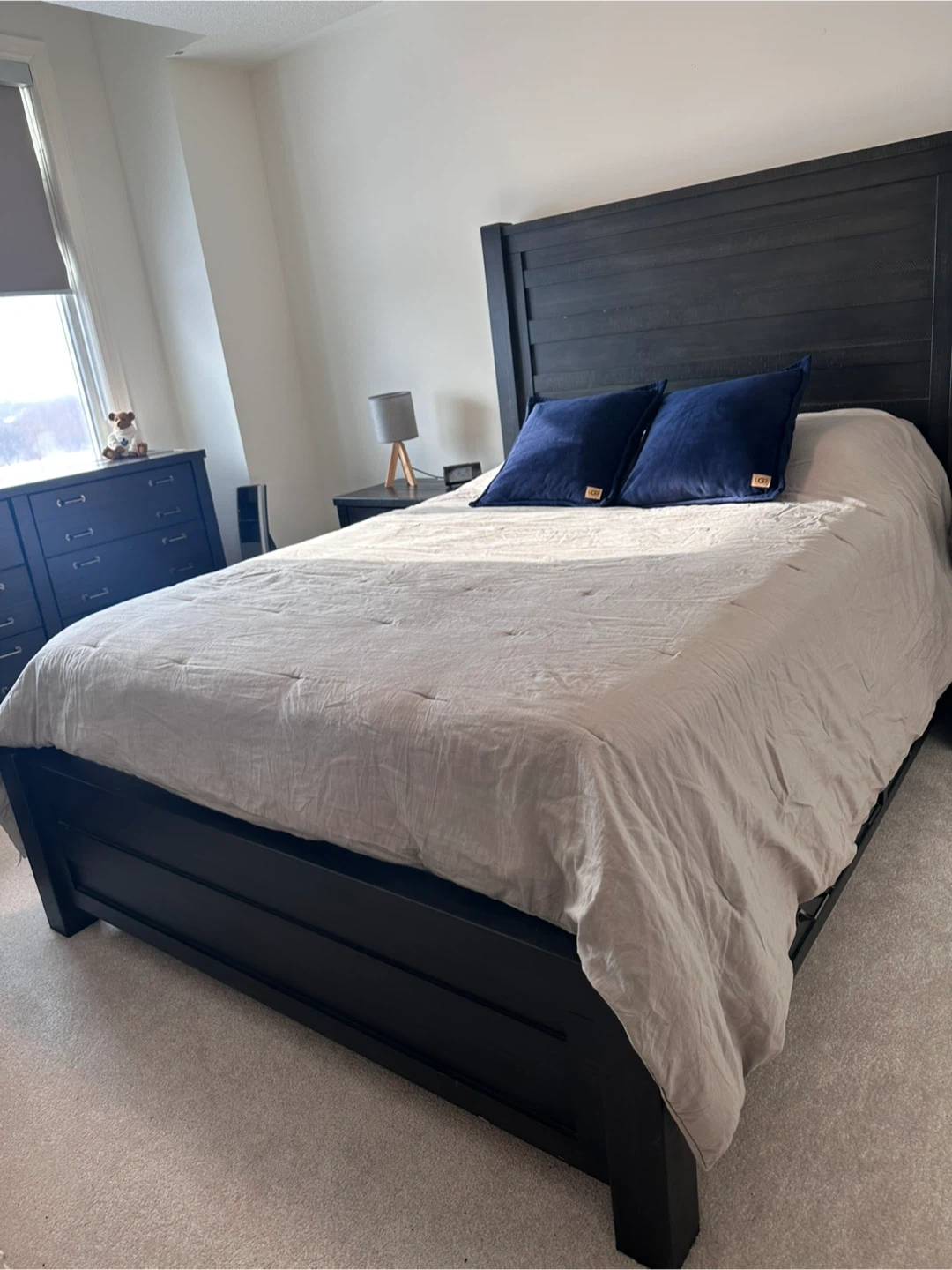 5 pcs Dark Wood Bedroom Set - Queen Bed, Dresser, Nightstands
