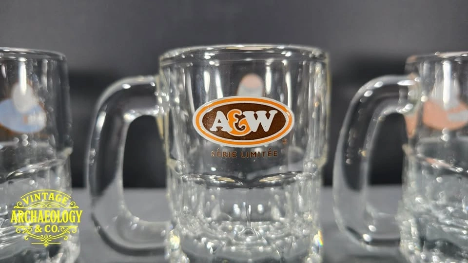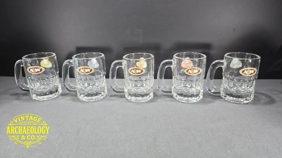 GLASS MINI MUGS WITH A&W ROOT BEER LOGOS SPECIAL ED. SET OF 5