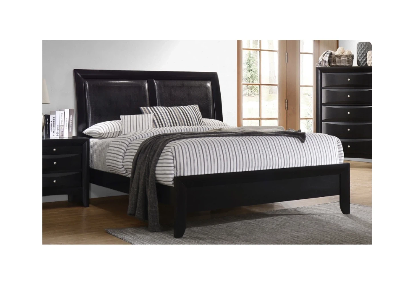 Black Queen Bed Frame with Padded Headboard