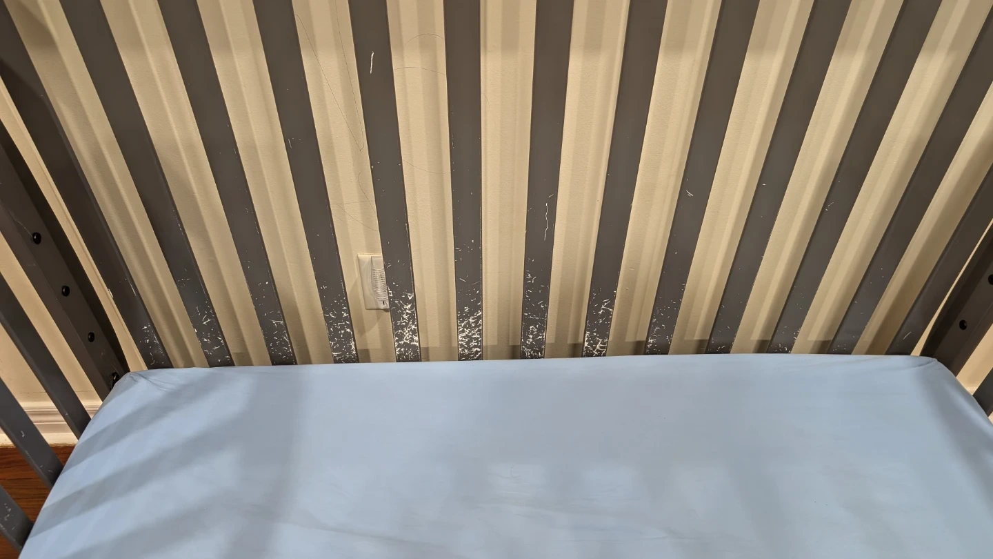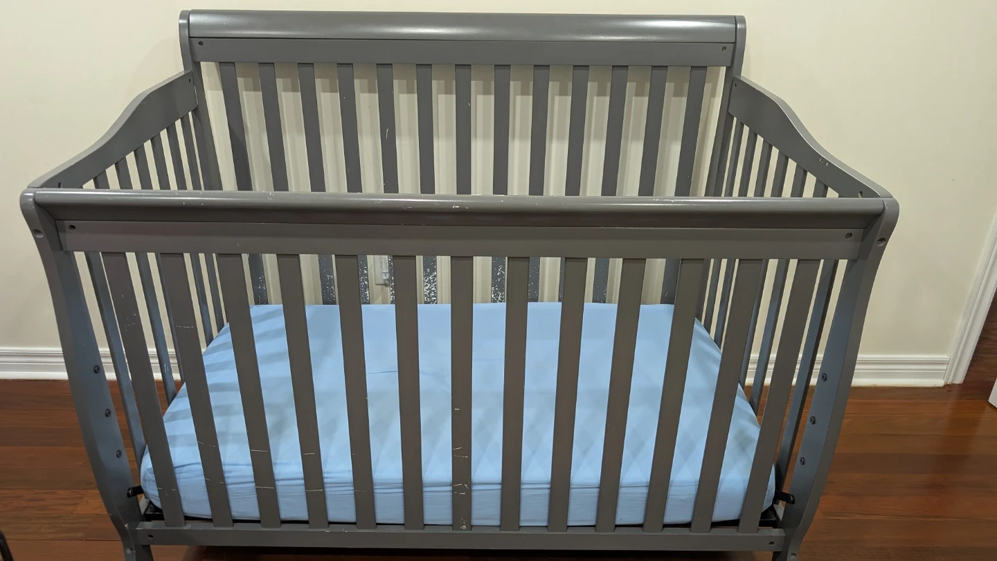 Grey Wooden Baby Crib with mattress