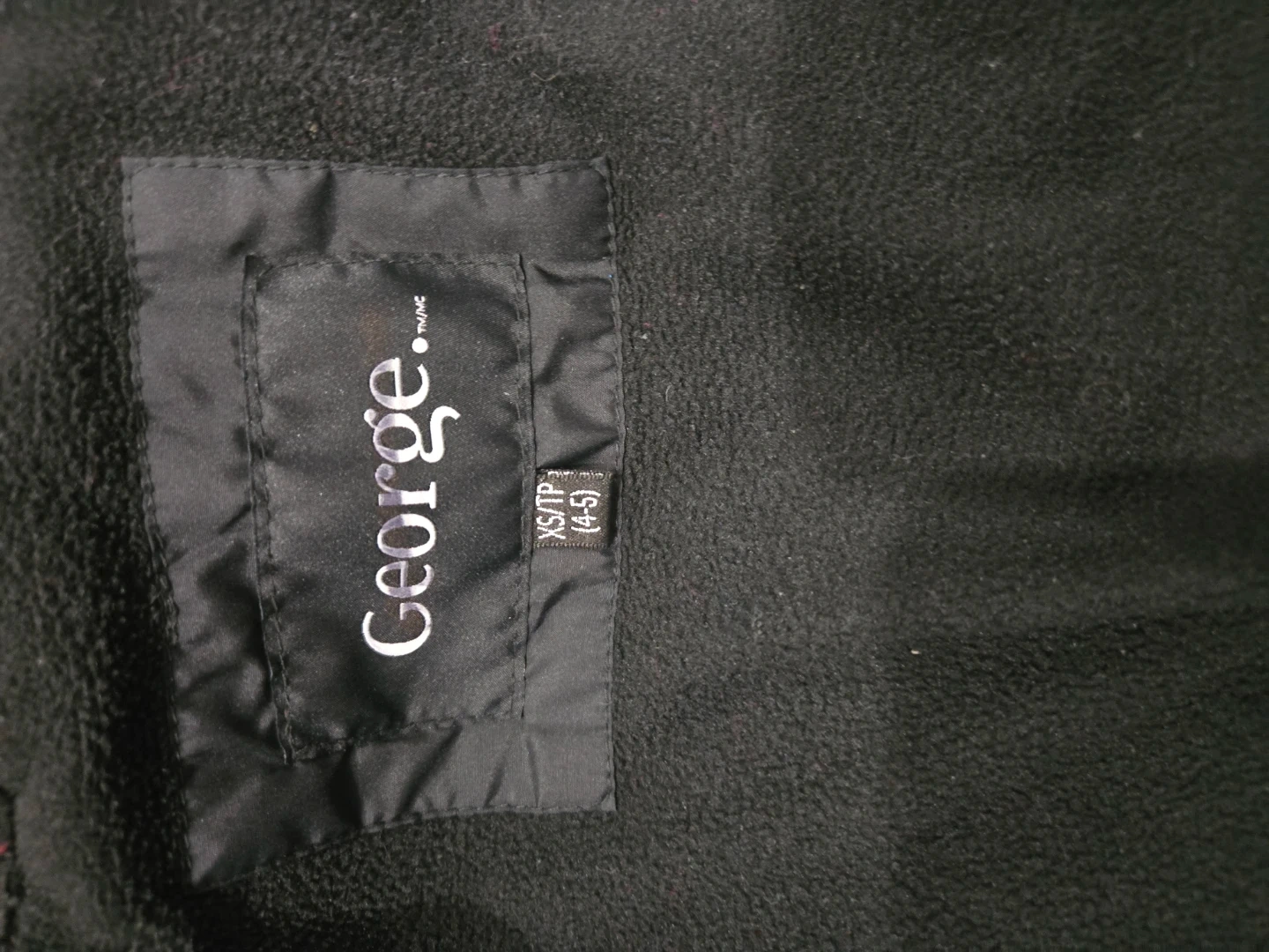 A black puffer winter jacket by George. It's a size XS (4-5). Lined with cozy fleece.