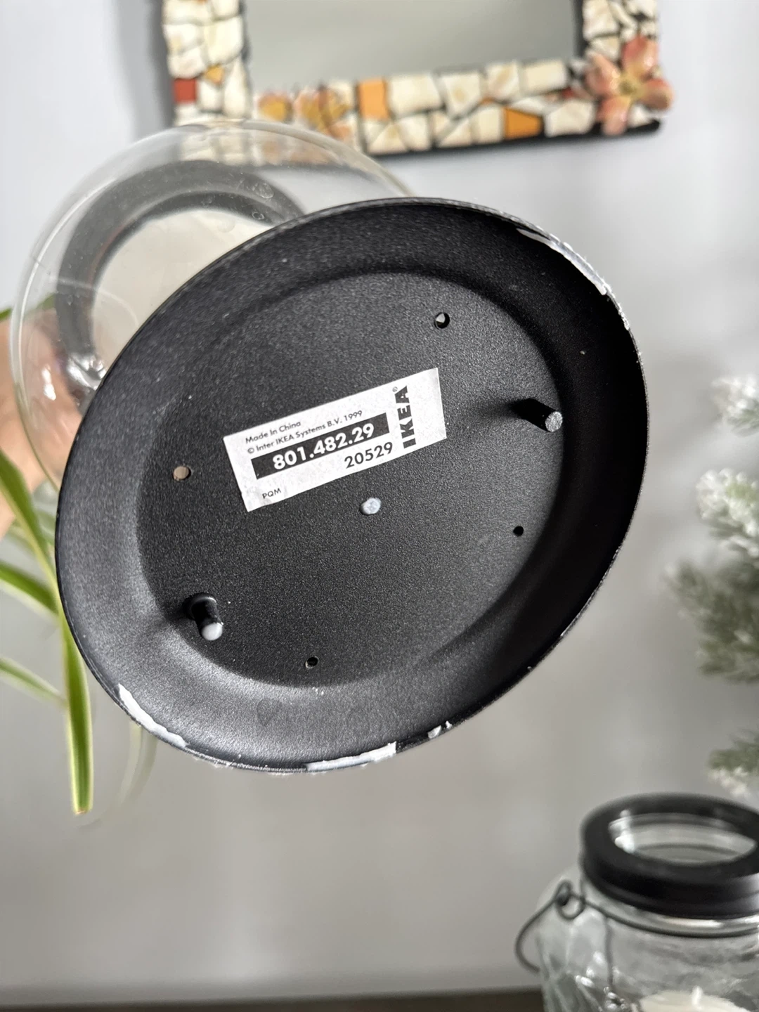 Tall lantern is from IKEA and measures about 12 inches