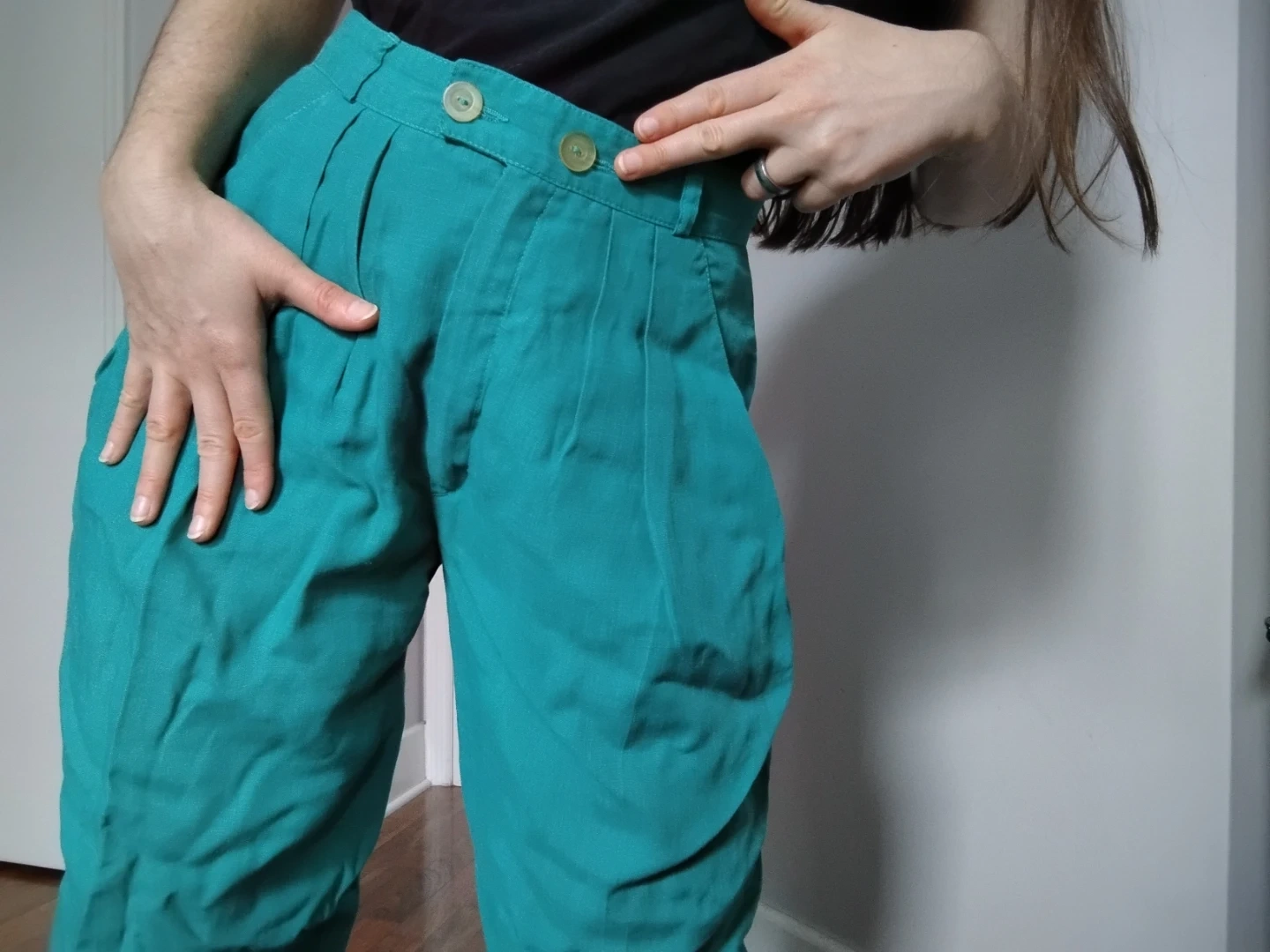 I know they need to be ironed, but otherwise the pleats details are intact and the double-button top closure is super cute! These have a decently long zipper, easy to pull on and tuck shirts into.