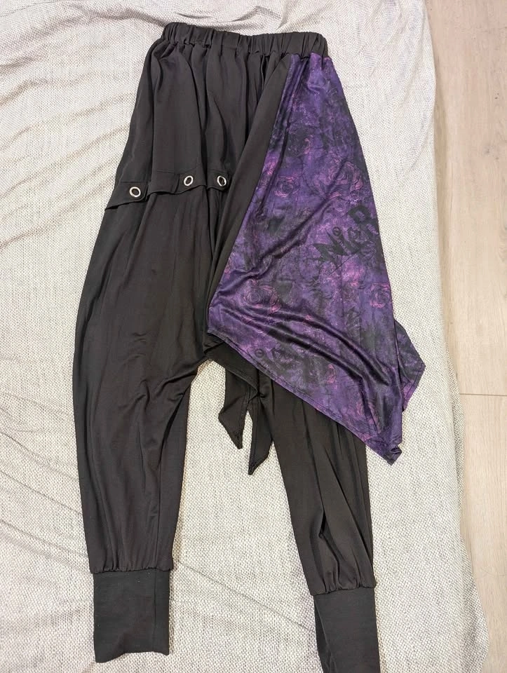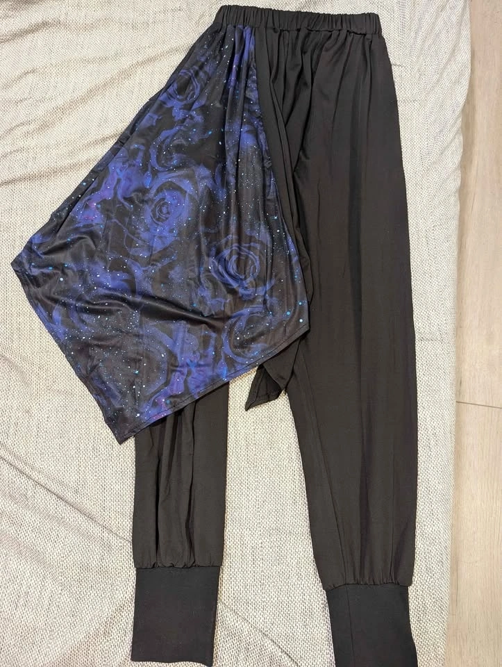 Selling NieR kimono-style sarouel pants in Purple and Blue. Both feature a flowing side flap with a unique pattern that moves beautifully when worn. Extremely stretchy elastic waistband, comfortable fit for a wide range of body types, unisex design, and one pocket on the left side. Soft and lightweight fabric. Both colors are no longer available from the official store and have never been restocked, making them rare to find, especially in Vancouver. Price: $80 each. Size: Free size. Condition: Excellent.