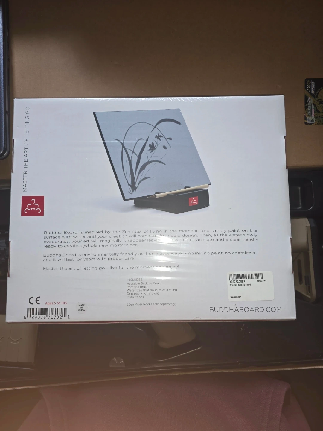 I'm selling a brand new Buddha Board - Master The Art of Letting Go! It's environmentally friendly as it only uses water - no ink, no paint, no chemicals - and it will last for years with proper care.