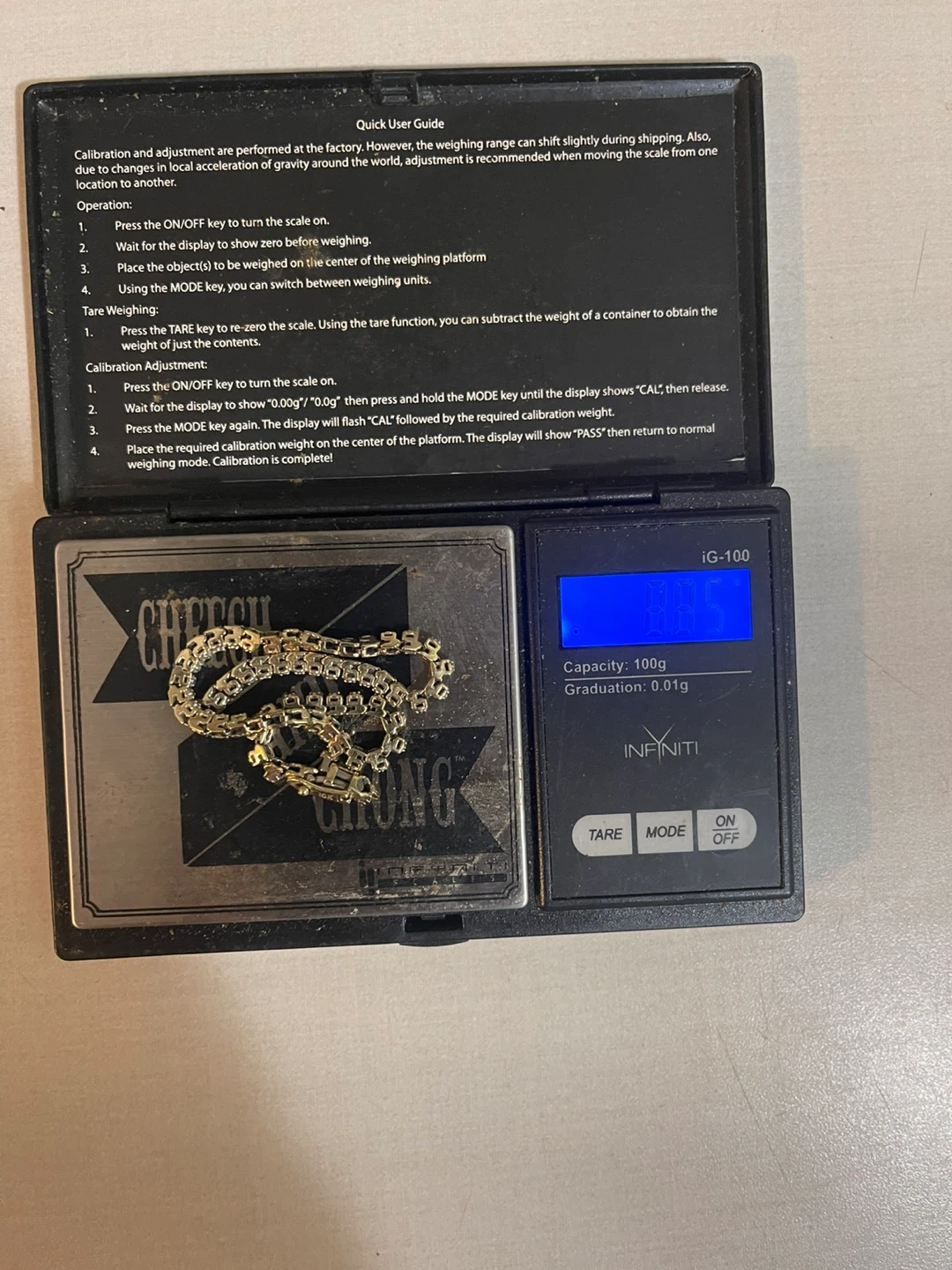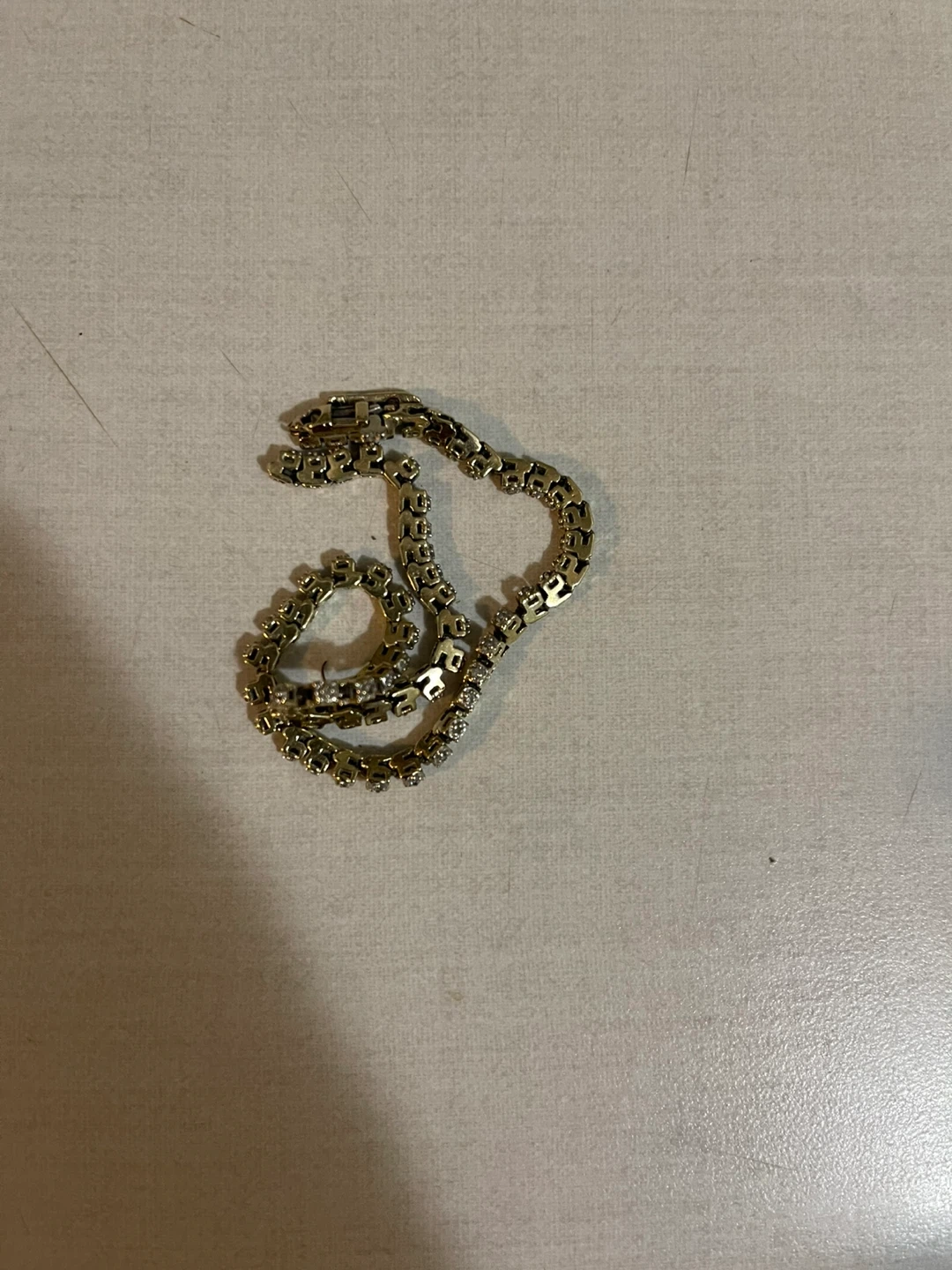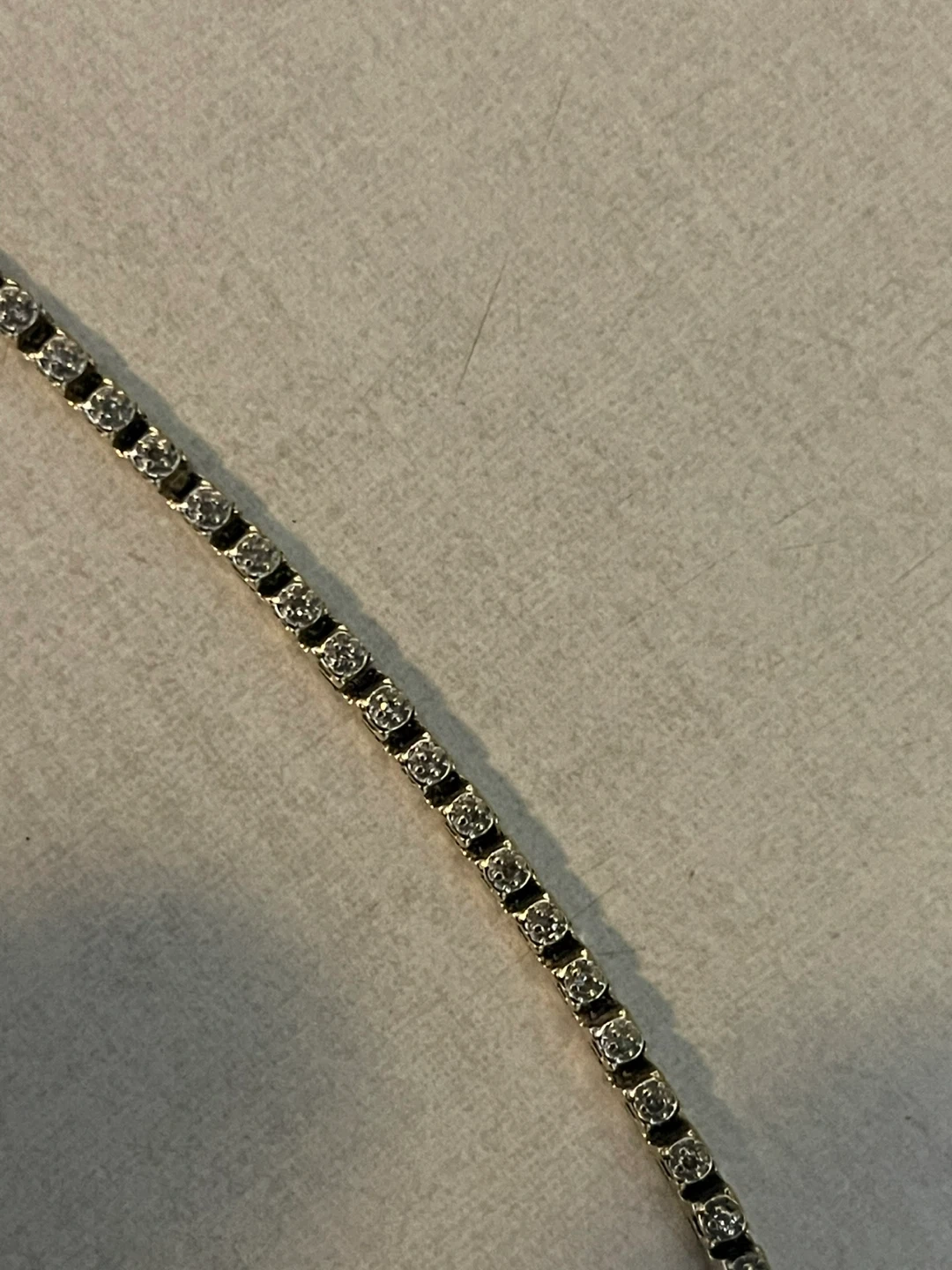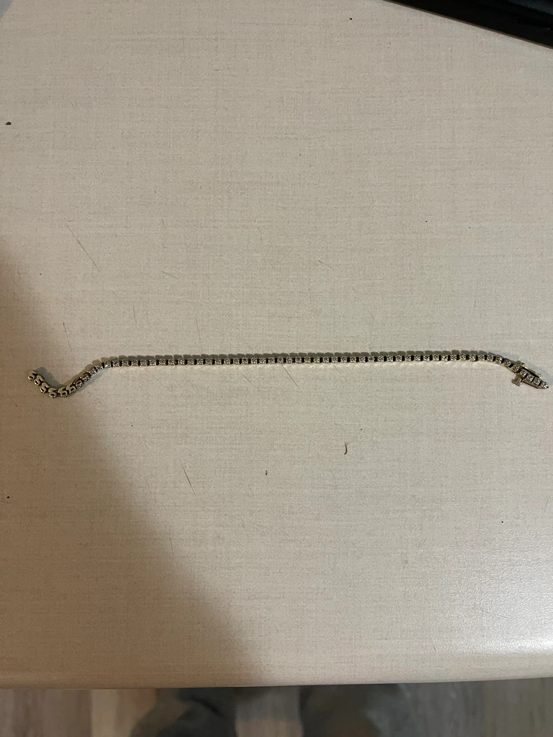 This classic 10k gold tennis bracelet with sparkling diamonds . It's approximately 7 inches long and has a secure clasp closure but is broken can easily get fixed . A lovely accessory for any occasion! 8.85 grams