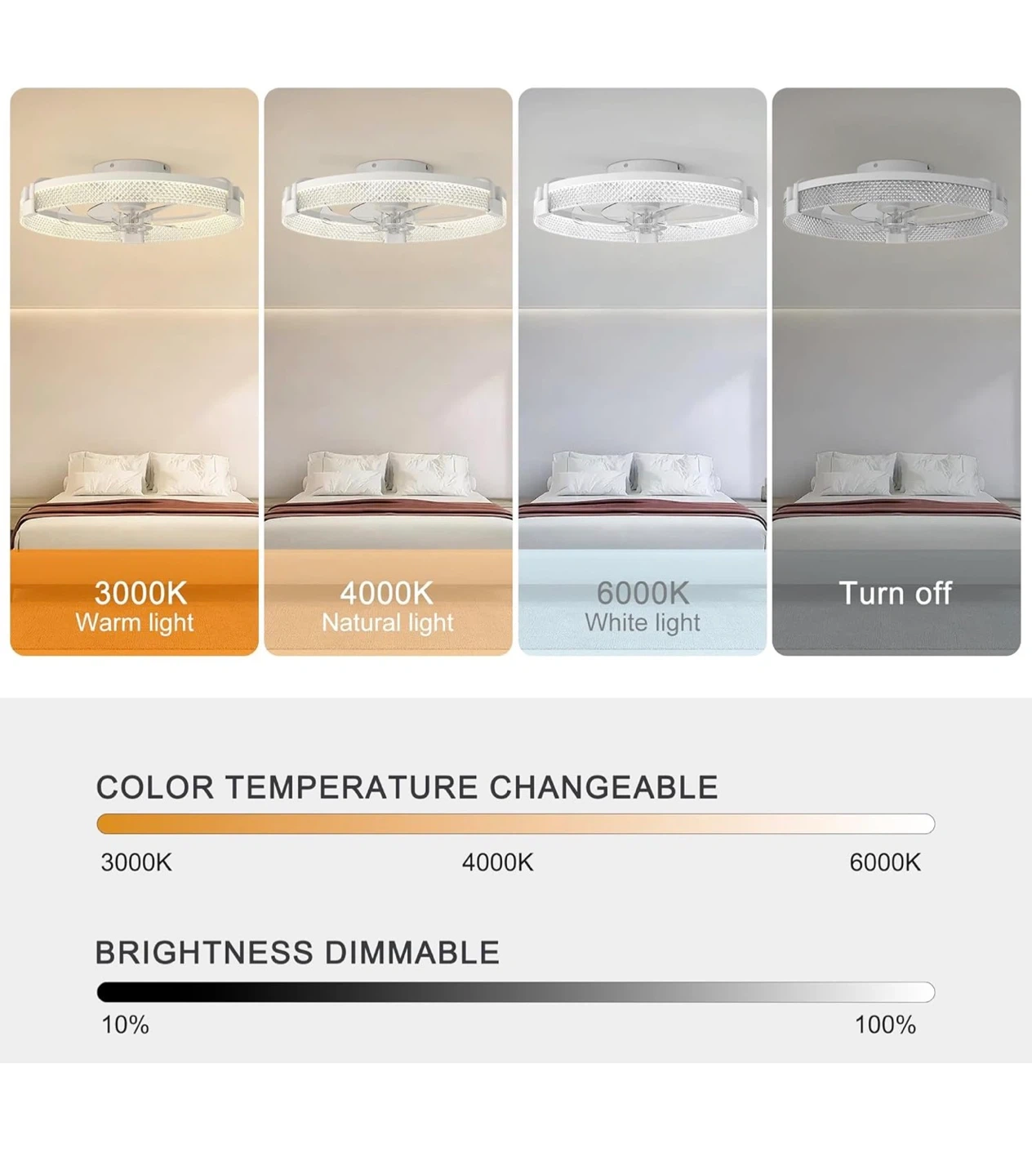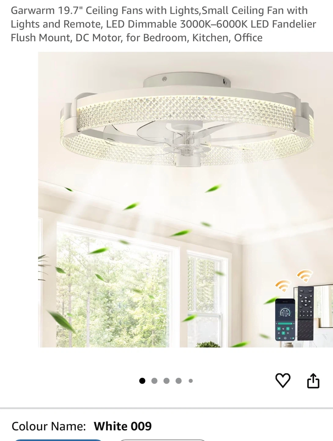 19.7" White Ceiling Fan with Lights, Dimmable LED, DC Motor CF19