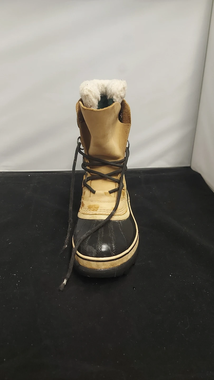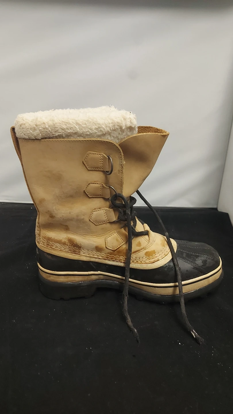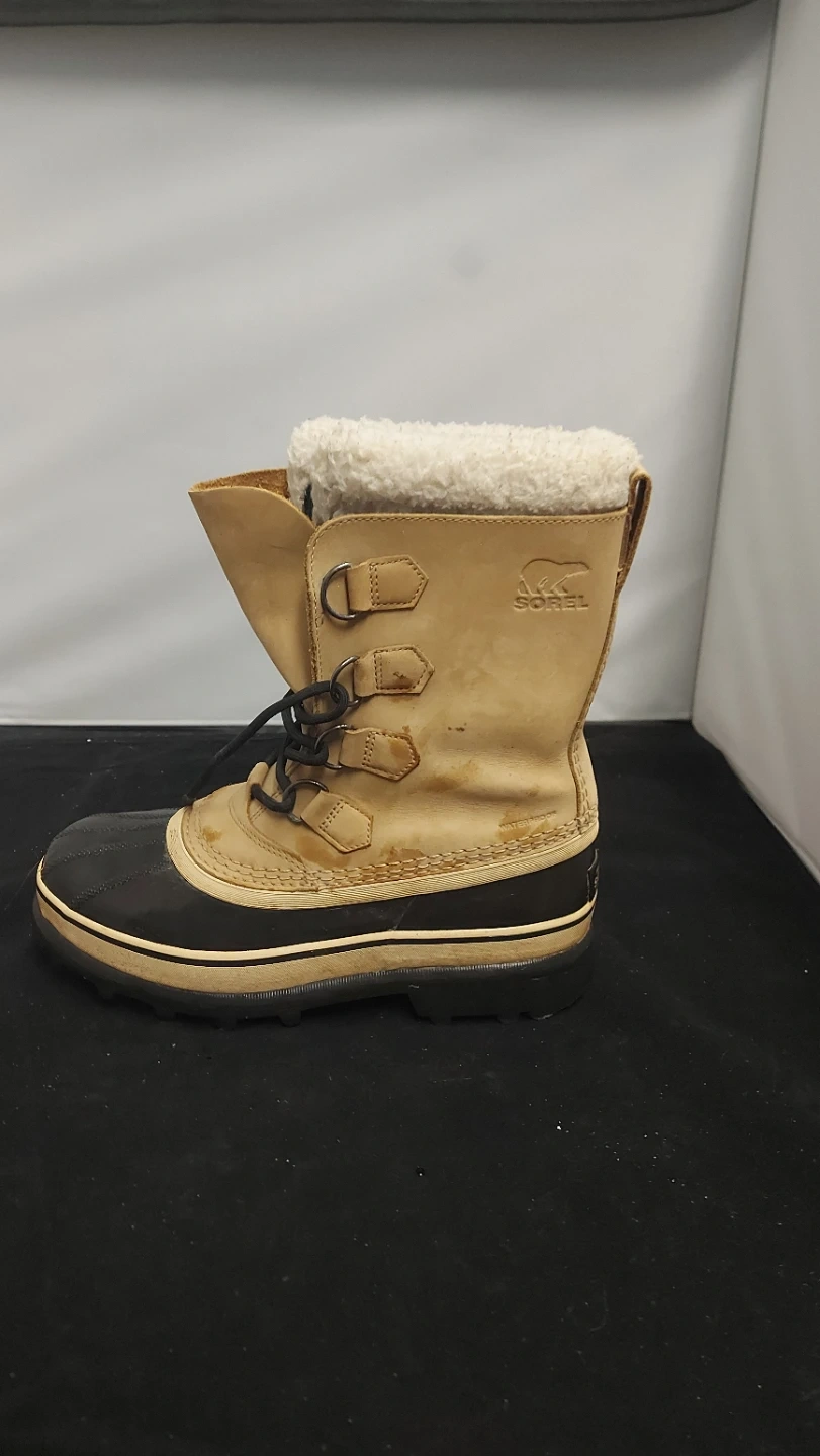 These Sorel winter boots are tan leather with black rubber bottoms and a white sherpa lining. They're insulated for cold weather. They're great for staying warm and dry during winter months! Pre owned & open to negotiate.