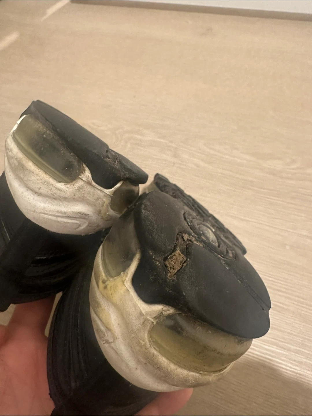 Selling a pair of Nike Air Max in black, size US 7.5. They have some wear and tear, as you can see in the photos, but still have plenty of life left! the laces are a little frayed on the plastic my dog bit on it