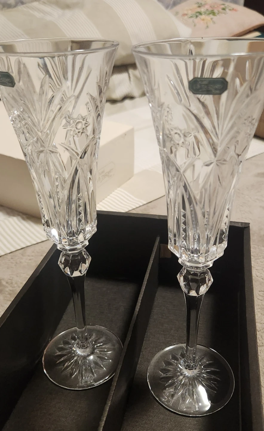 Selling a set of two Cristal G.Durand champagne flutes! They come in their original box and are in great condition. Perfect for celebrations or adding a touch of elegance to your home. excellent condition never used.