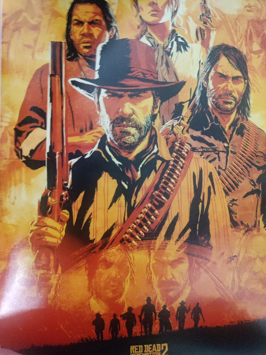 This poster features artwork from the popular video game Red Dead Redemption 2. It showcases key characters and imagery from the game's Wild West setting. A great piece for fans of the series!