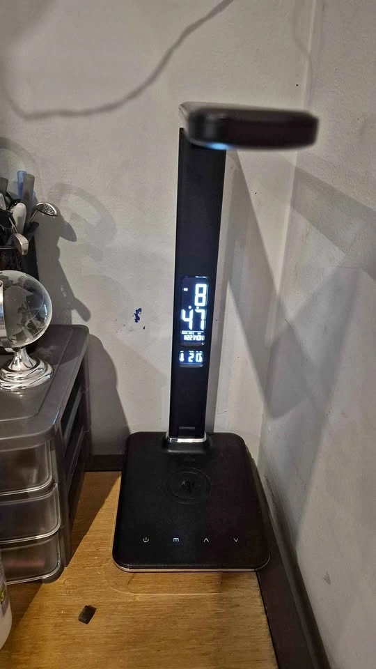 Modern and practical LED desk lamp with built-in Qi wireless charger – perfect for your home office, study desk, or bedside table.