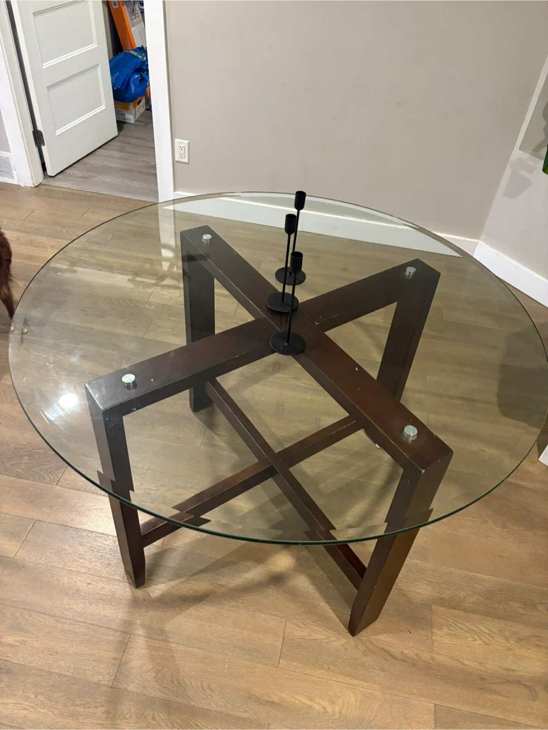 Selling a round coffee table with a glass top. The dimensions are: