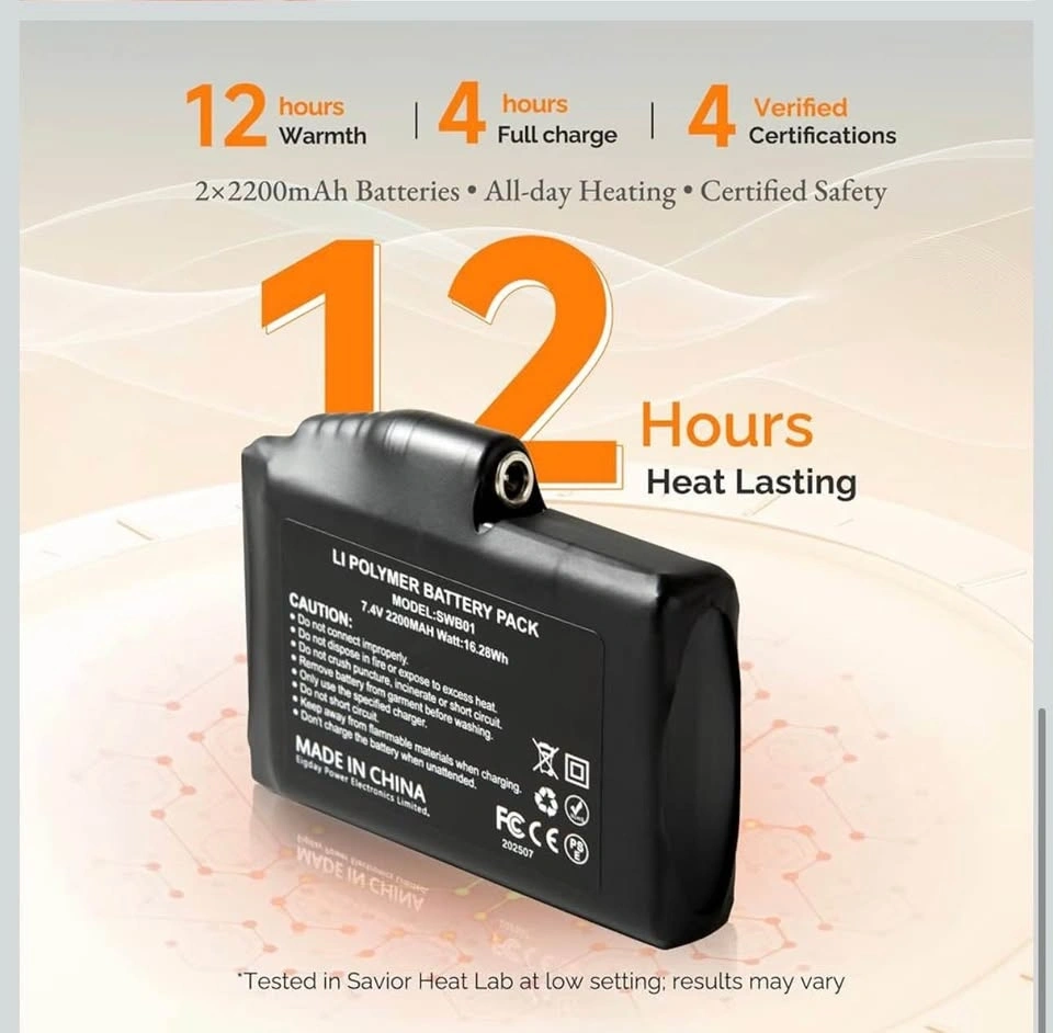Stay warm safely with smart safety features that automatically adjust heat levels to prevent hot spots. These heated socks deliver steady warmth for skiing, snowboarding, hunting, winter work, hiking, biking, and more. Control them conveniently via Bluetooth app to switch modes, set timers (0-180 minutes), and check battery levels on your phone. An on-sock switch offers quick backup control. Each pair includes 2 rechargeable 7.4V 2200mAh batteries, providing up to 12 hours of warmth on a single charge. They feature quick heat-up and 3 selectable heat levels (104°F / 122°F / 149°F). Made from premium Merino wool, they trap heat, wick away sweat, resist odor, and fit smoothly under boots. They are washable for easy care. The slim fit design is perfect for ski, work, and hiking boots. Available in Unisex sizes S, M, L, XL (US shoe sizes 5-14).