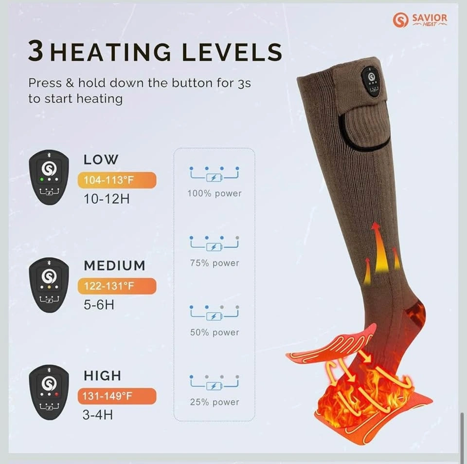 SAVIOR HEAT Heated Socks - App Control, Merino Wool, Rechargeabl