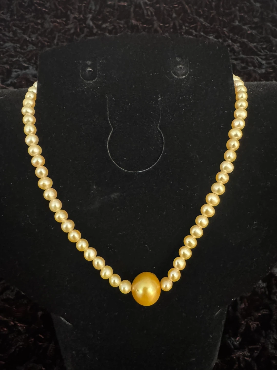 Beautiful natural pearl necklace featuring a larger central pearl with smaller pearls graduating toward the clasp. A timeless and refined design with a soft, luminous finish.
