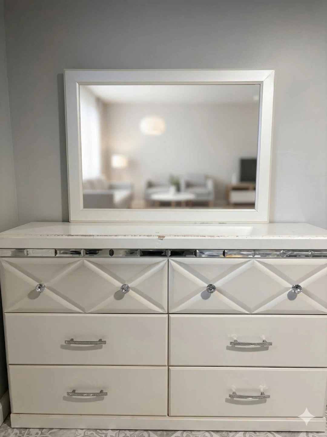 📌Main Dresser: 6 spacious drawers with a large, matching mirror.