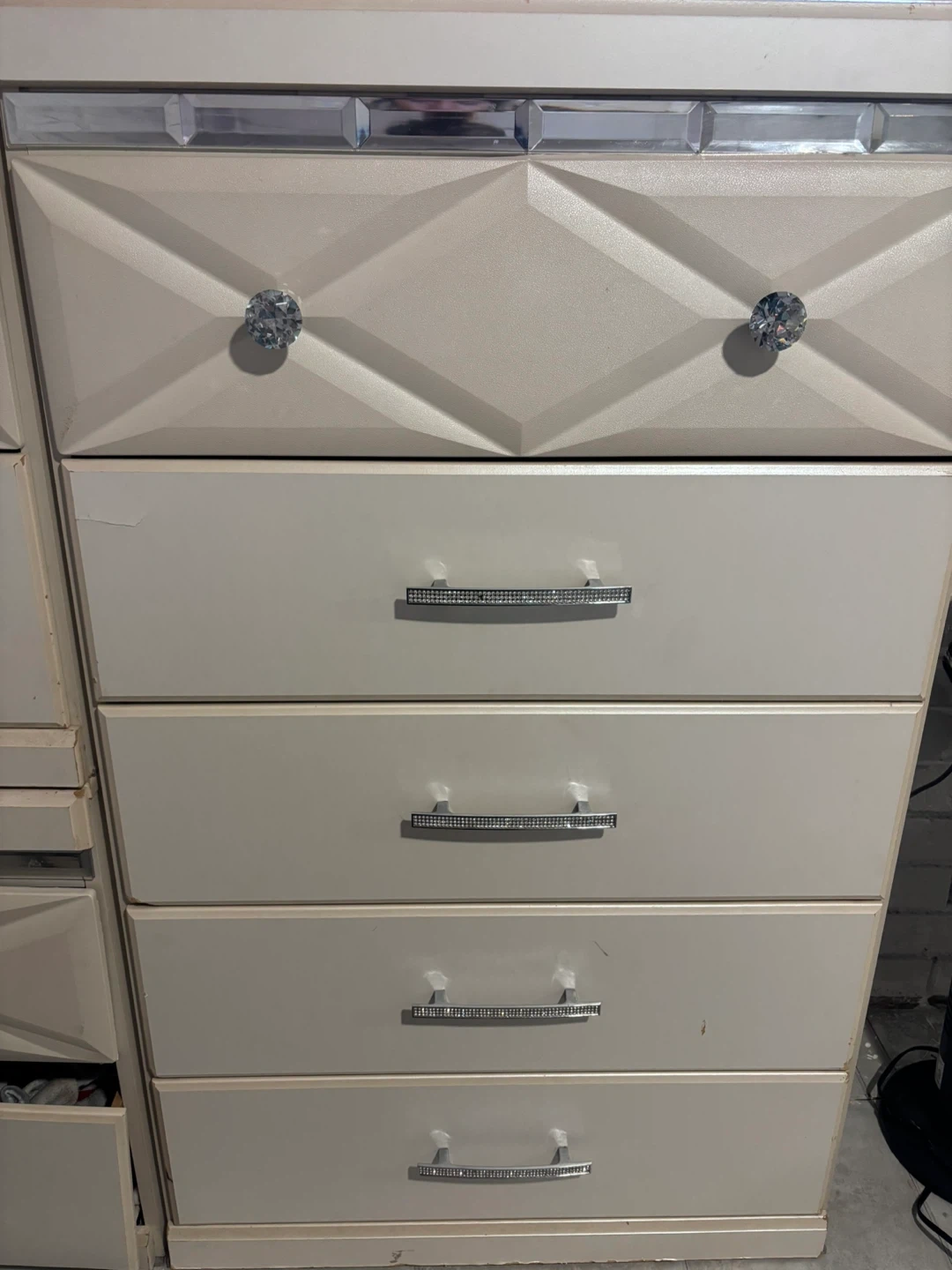 ✨Bling Handles: Crystal-embellished pulls on every drawer.