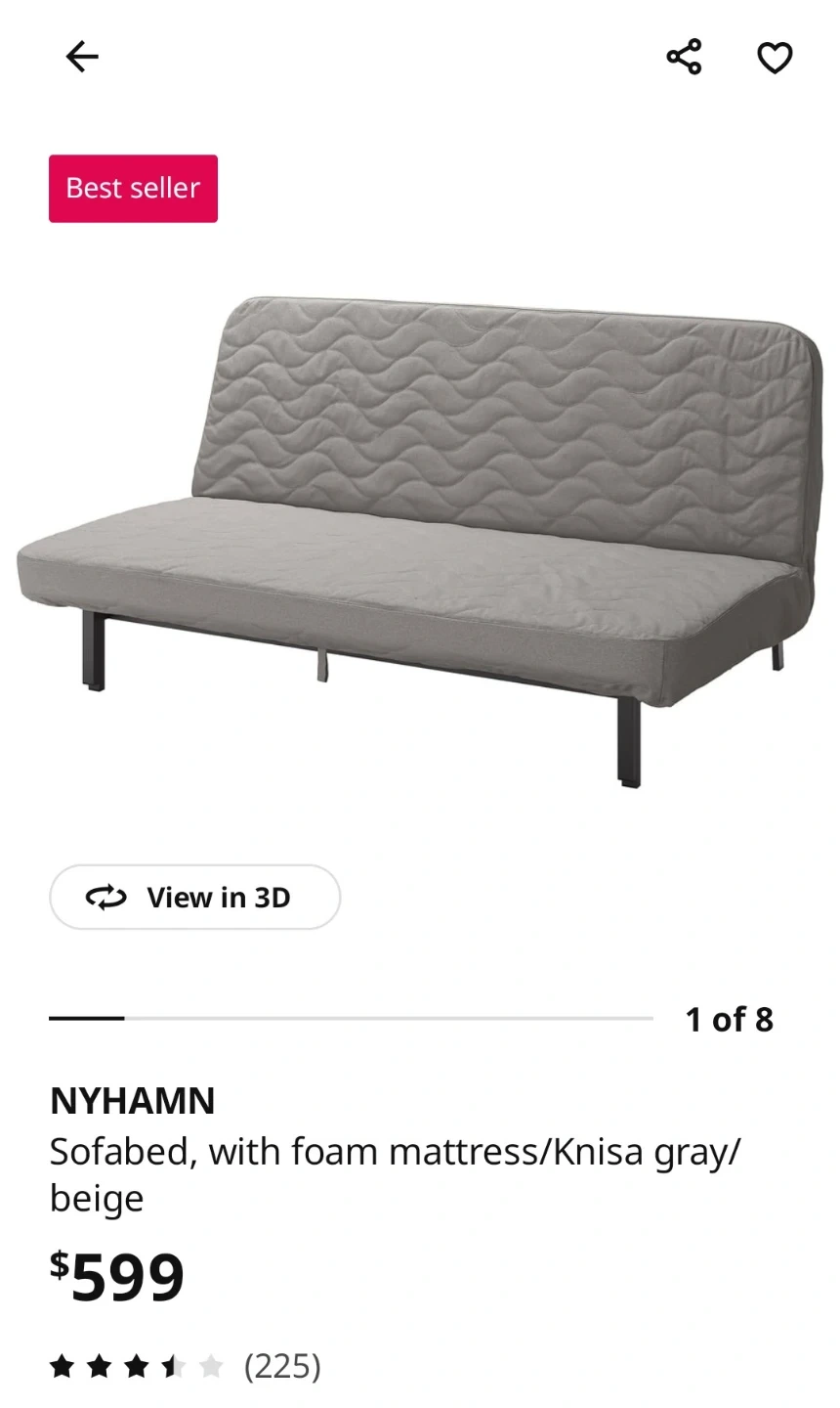 FREE ikea NYHAMN sofabed featuring a foam mattress